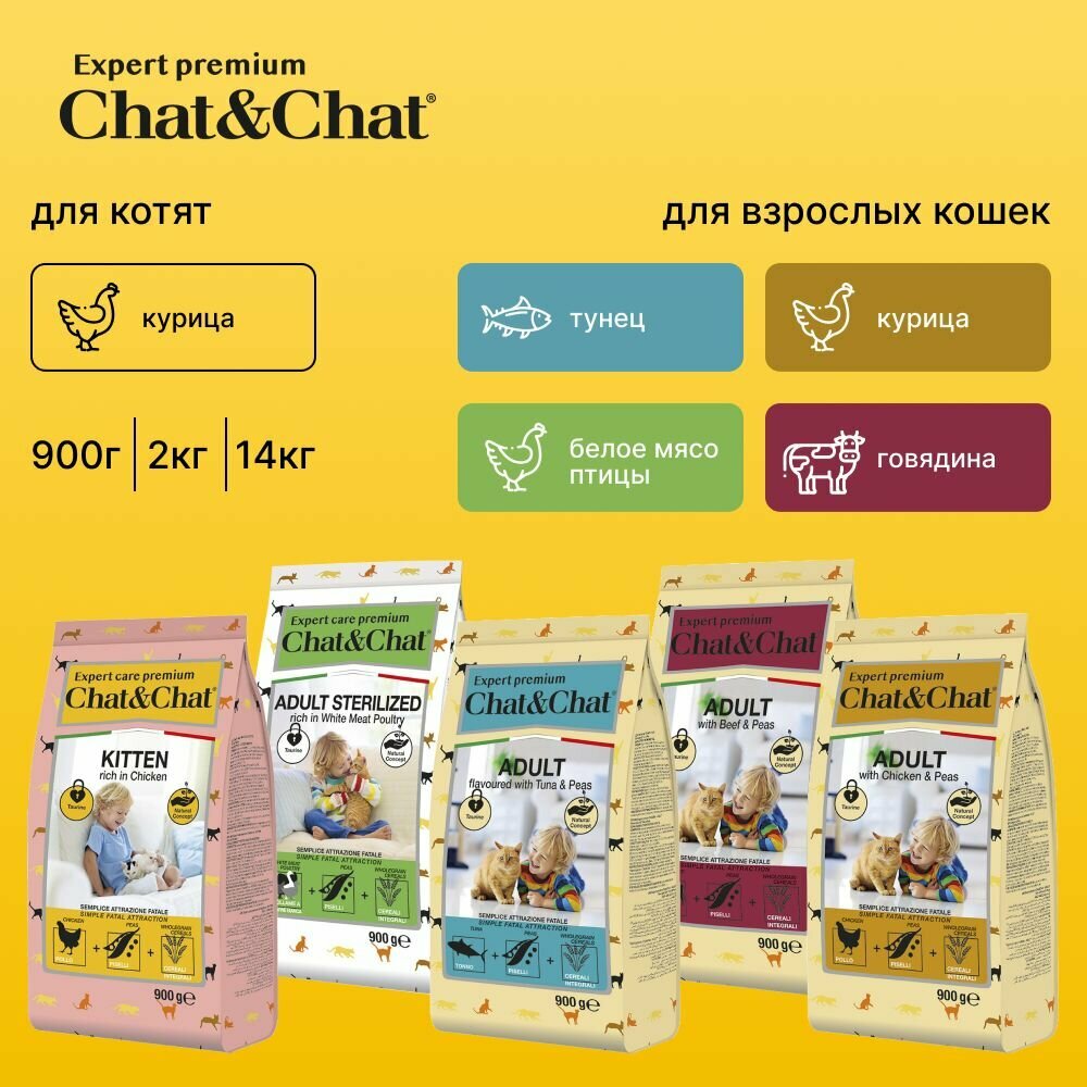 Сухой корм Chat&Chat Expert Premium Adult with chicken & peas, для взрослых кошек с курицей и горохом, 900г