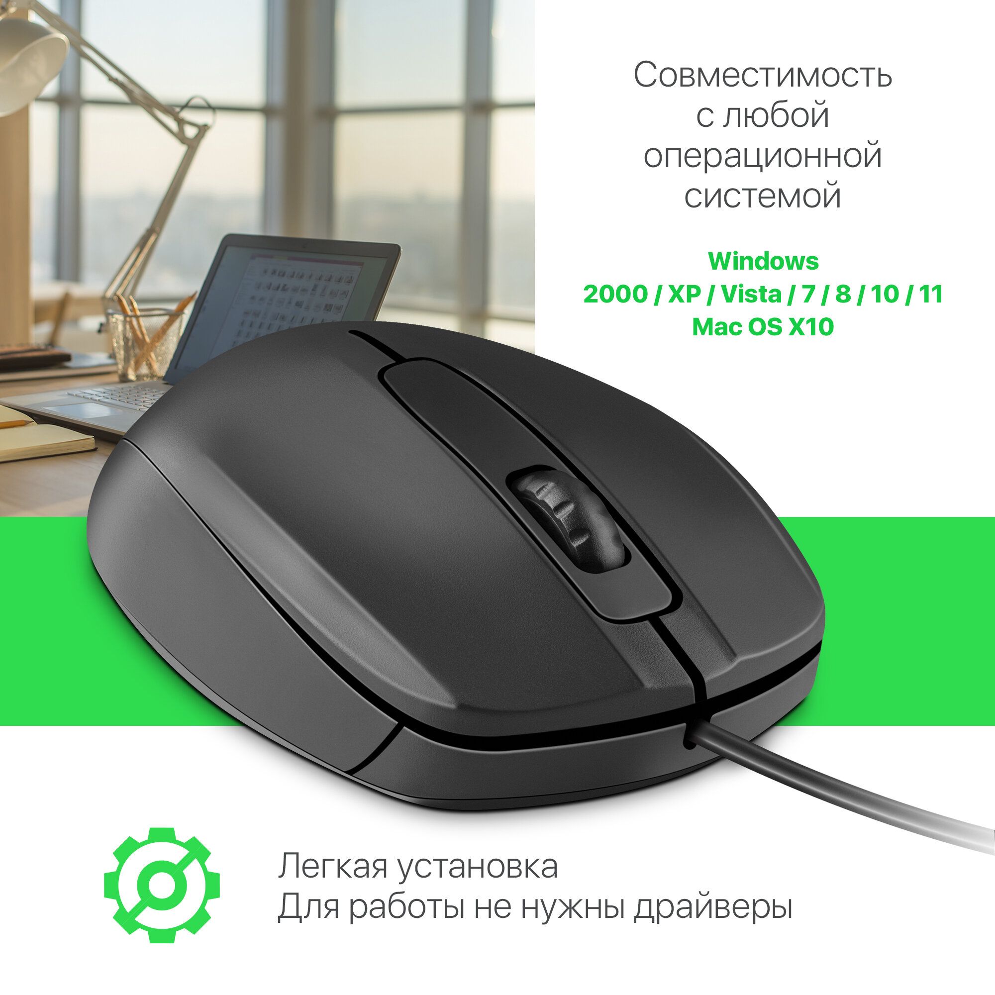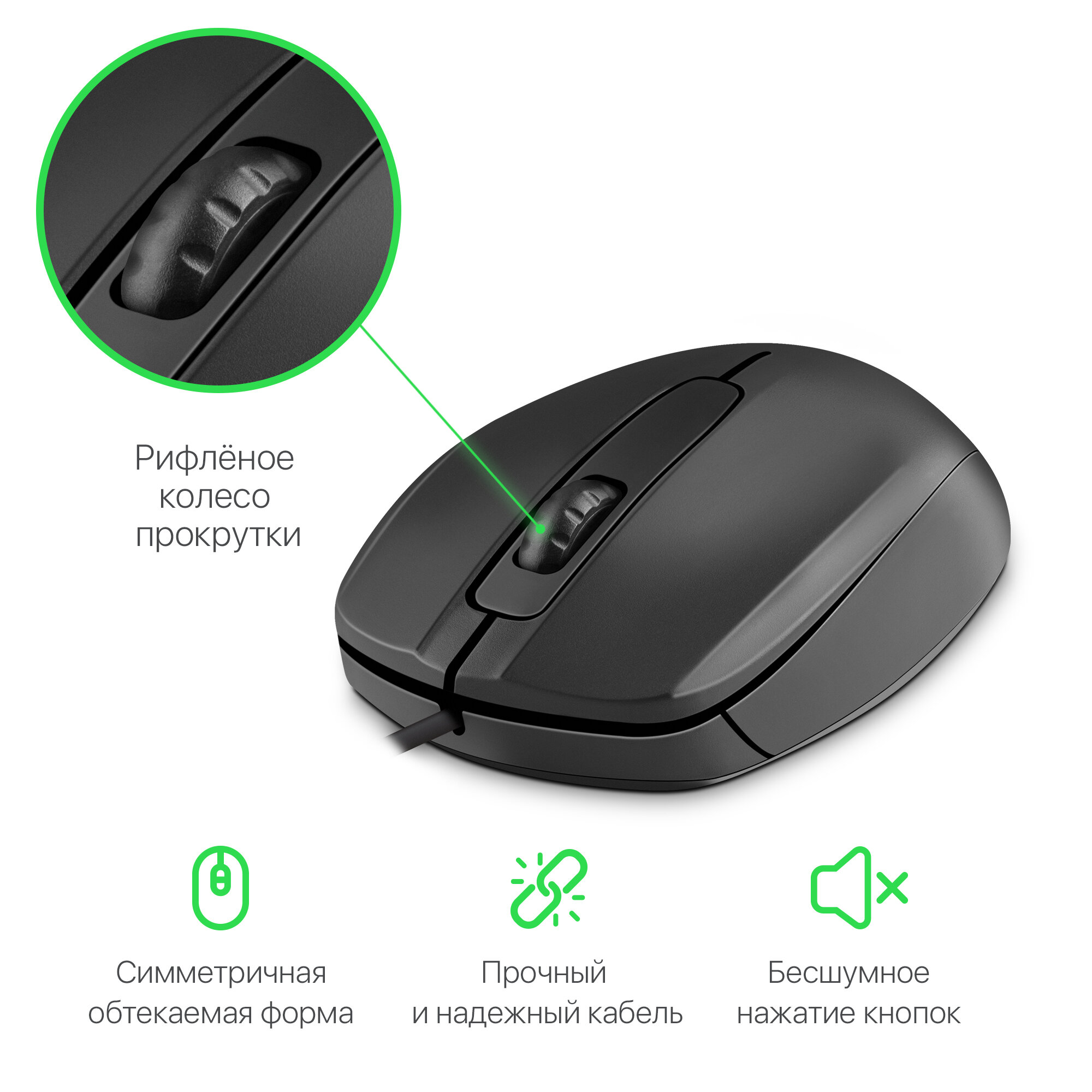 Мышки Проводная оптическая мышь Defender Alpha MB-507 черн,3D, бесшумная,1,8м