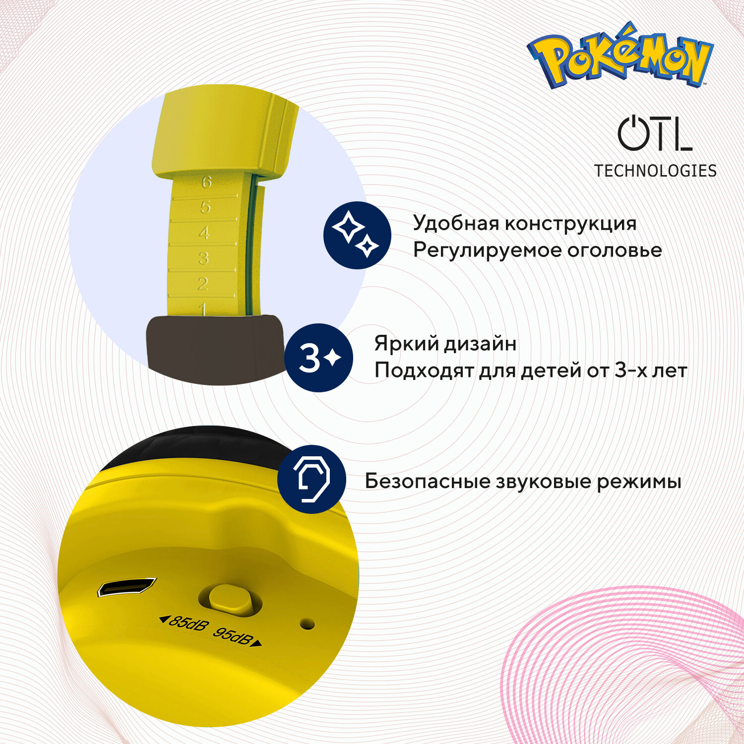 Наушники Детские беспроводные наушники OTL Покемон Пикачу, накладные, складные, Bluetooth 5.1