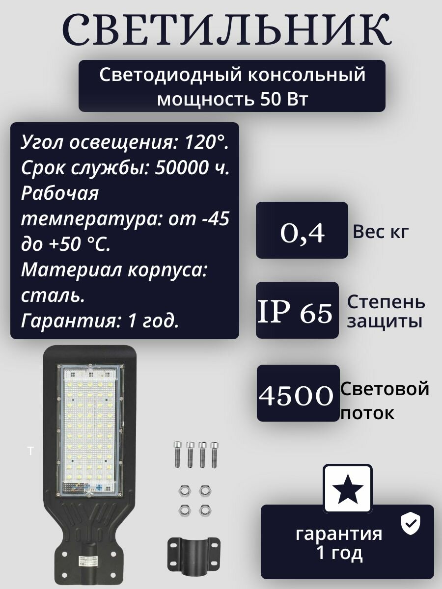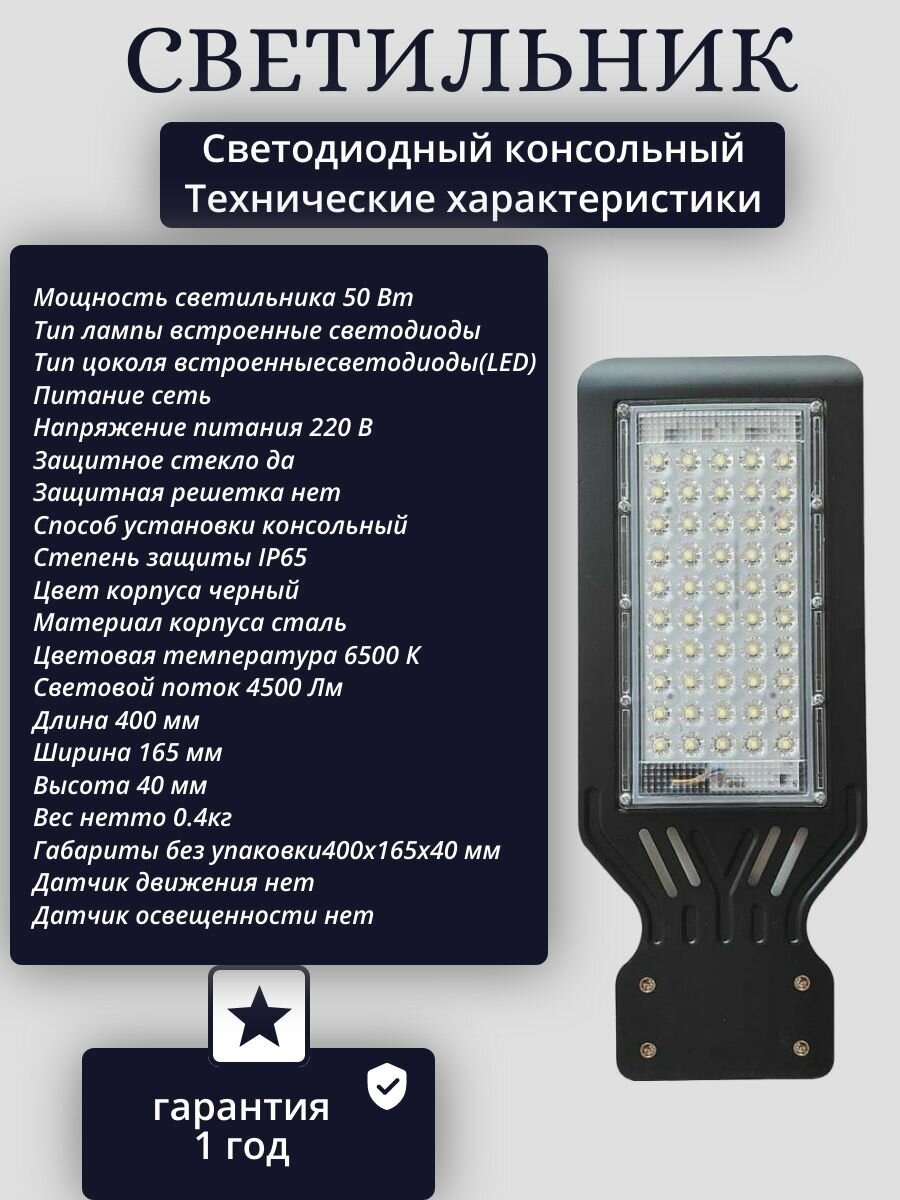 Прожекторы и светильники Светильник консольный RPD-6500-50-k уличный, светодиодный, 50Вт, IP65, черный