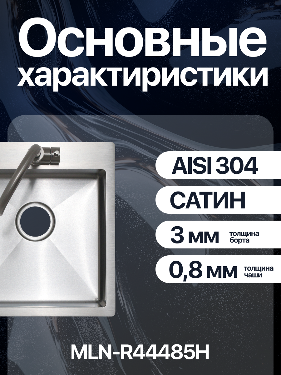 Мойка R5040H MELANA ProfLine 3,0/200 сатин врезная квадратная R5040H 15 485 ₽ Подробнее
