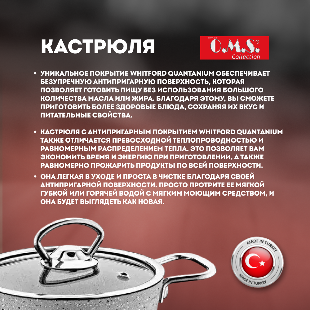 Кастрюля с антипригарным покрытием, 24 см, 4.5 л, O.M.S. Collection, красного цвета