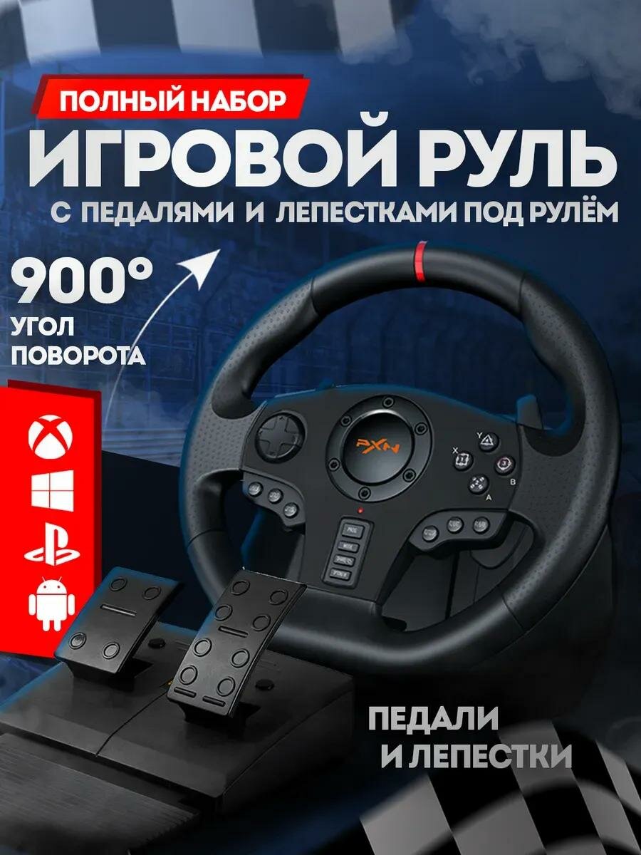 Игровой руль PXN V900 для ПК, PS3, PS4, XBox One, Nintendo Switch / Гоночный симулятор вождения с педалями, Черный / WinStreak 23 990 ₽ Подробнее