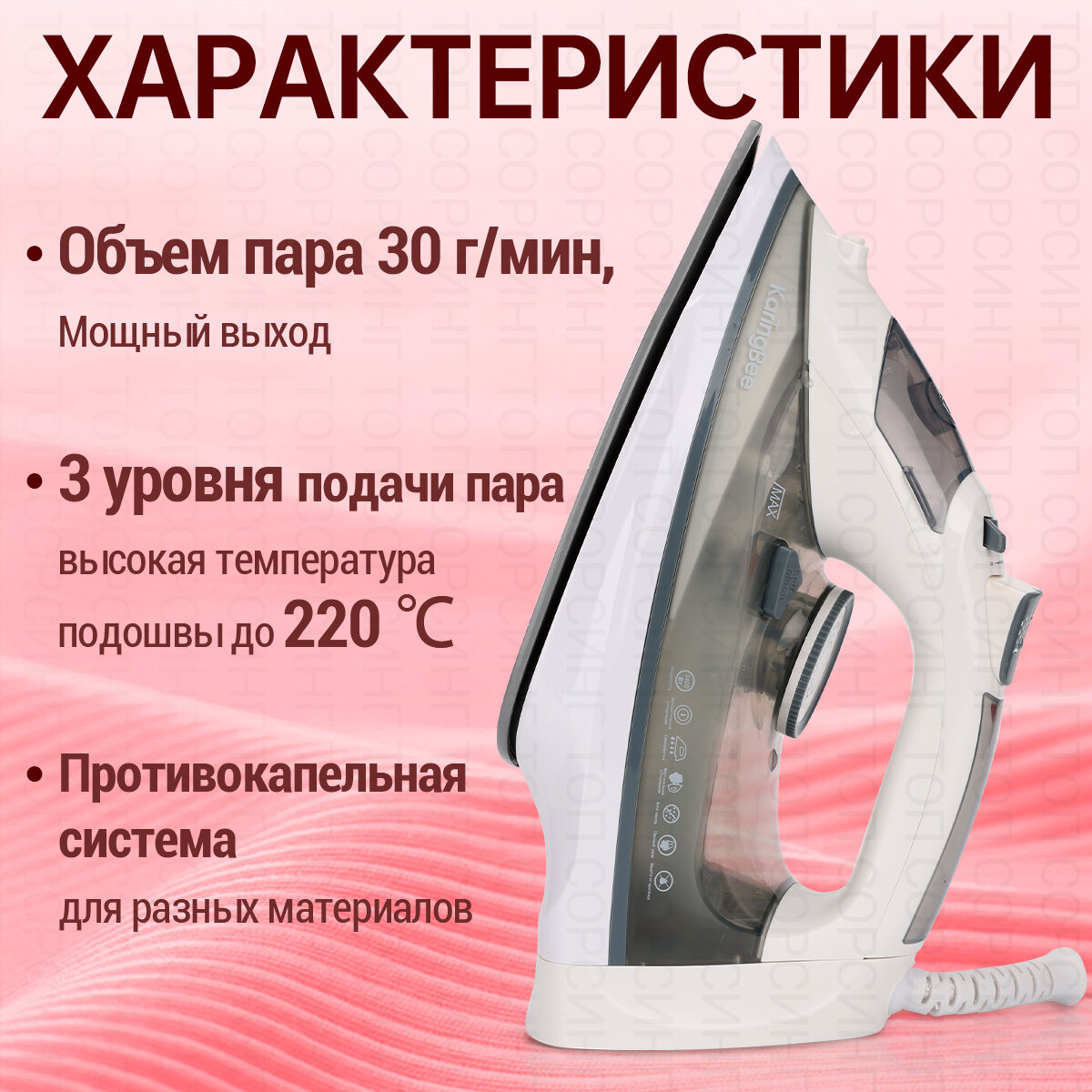 Утюг паровой мощный с отпаривателем KaringBee KB-EI003 красный(ЕАС-сертификат) 1 690 ₽ Подробнее