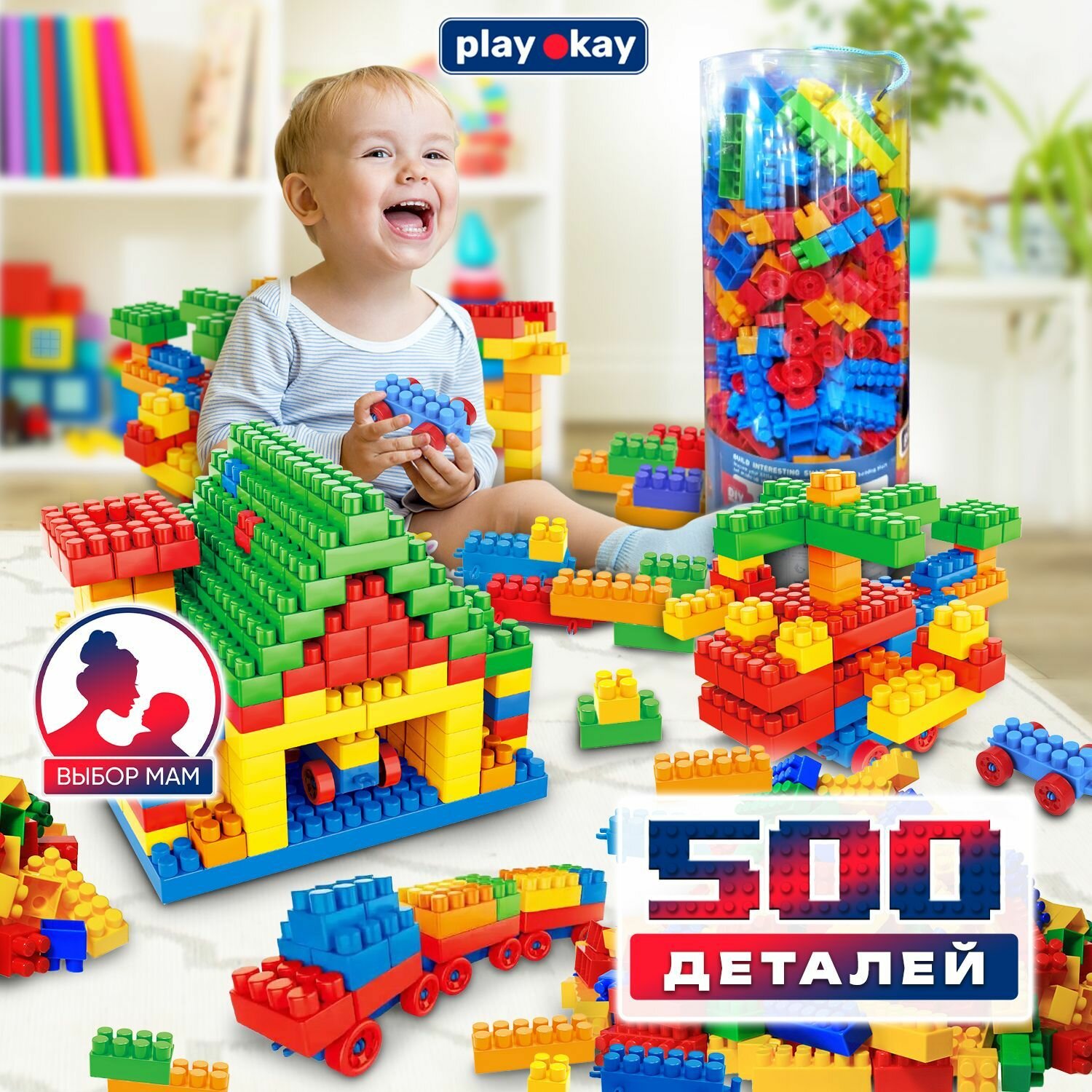 Конструкторы Детский конструктор для малышей от 3 лет Play Okay, 500 деталей, пластиковый, развивающая игрушка для мальчиков и девочек, блочный