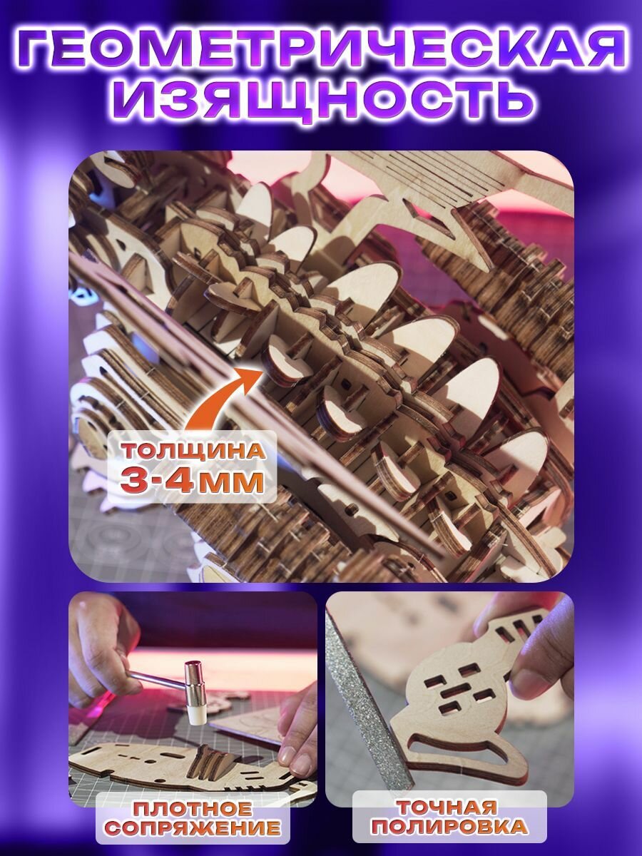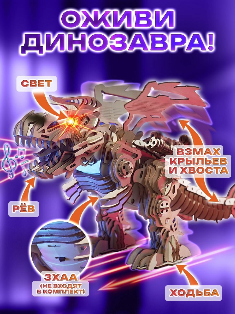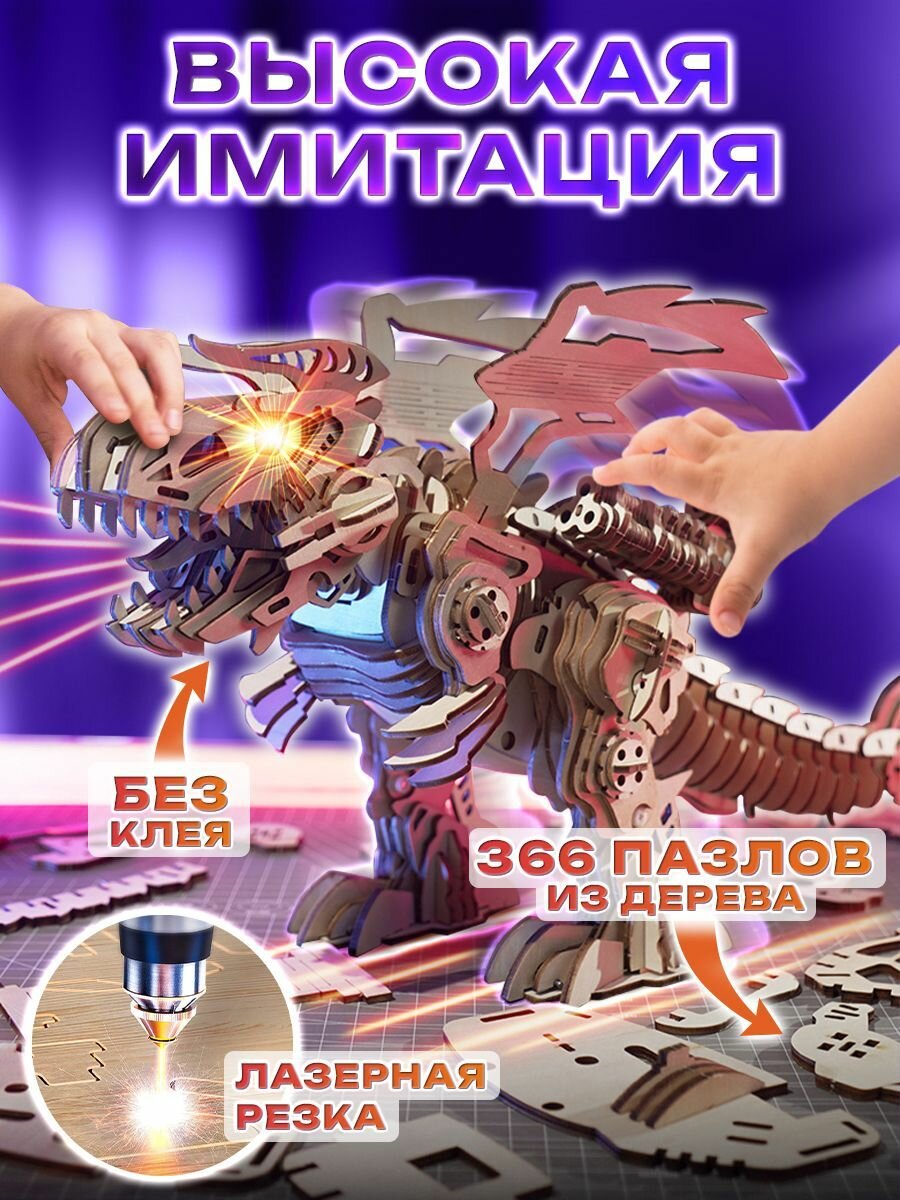 Конструкторы Деревянный конструктор 3Д, сборная модель Динозавра для детей, развивающая механическая игрушка для мальчика движущаяся со светом и звуком