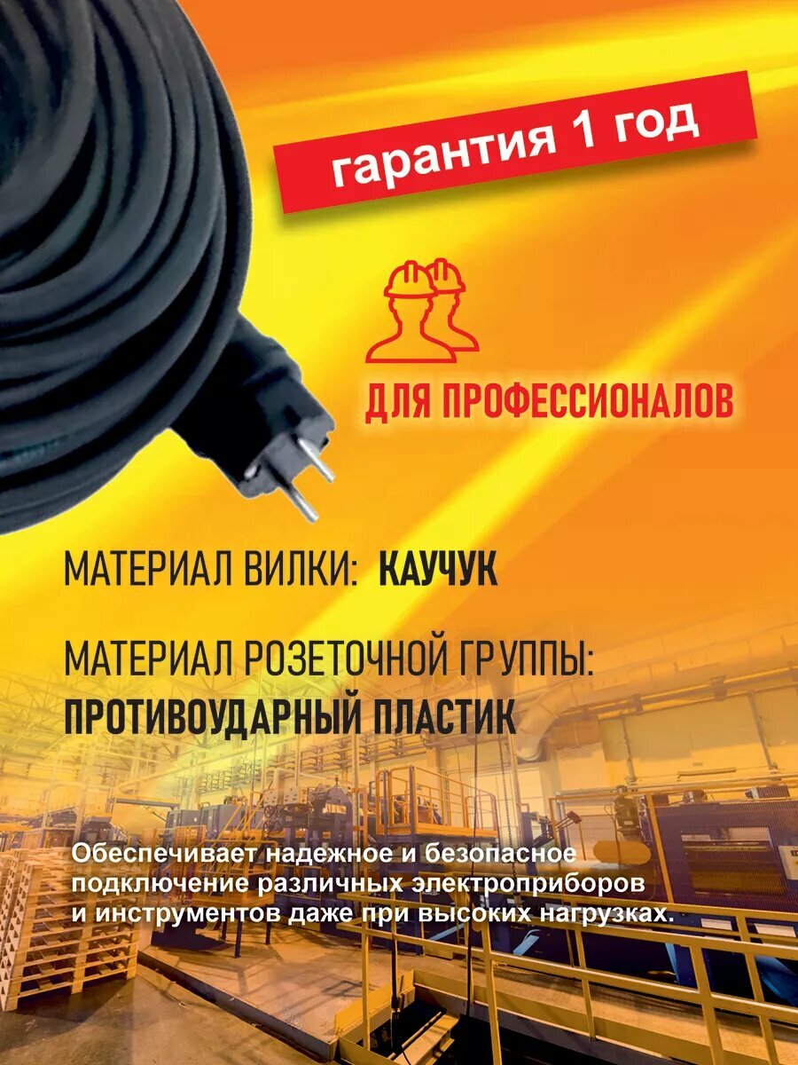 Сетевые фильтры и удлинители Удлинитель силовой строительный с заземлением 3x2,5-20м