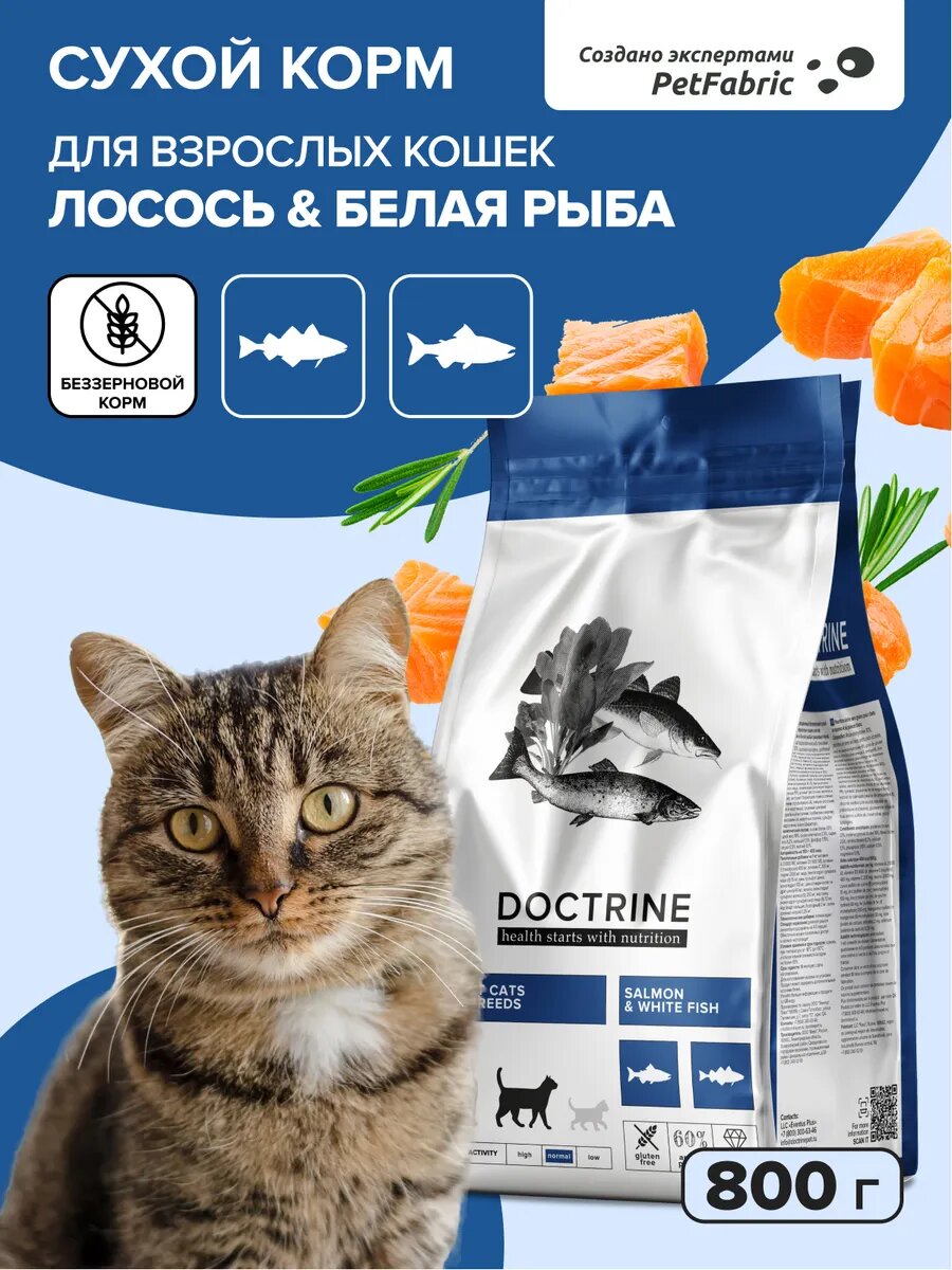 Сухой корм для кошек Беззерновой DOCTRINE, Лосось и белая рыба 800г 790 ₽ Подробнее