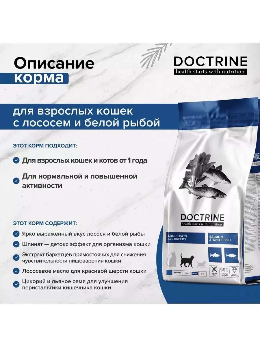 Сухой корм для кошек DOCTRINE с лососем и белой рыбой 3кг, супер премиум 3 084 ₽ Подробнее