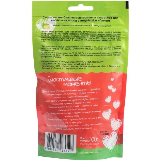 Корм для собак Лакомство TiTBiT Счастливые моменты снеки мягкие с индейкой и яблоком для собак (100 г)
