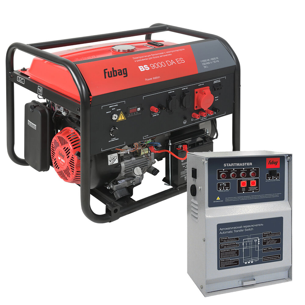 Генератор бензиновый FUBAG BS 6600 DA ES с электростартером и коннектором автоматики, 8 кВА, 400 В, 641693 + Блок автоматики FUBAG Startmaster BS 6600 D для бензиновых генераторов для трехфазной сети, 431284
