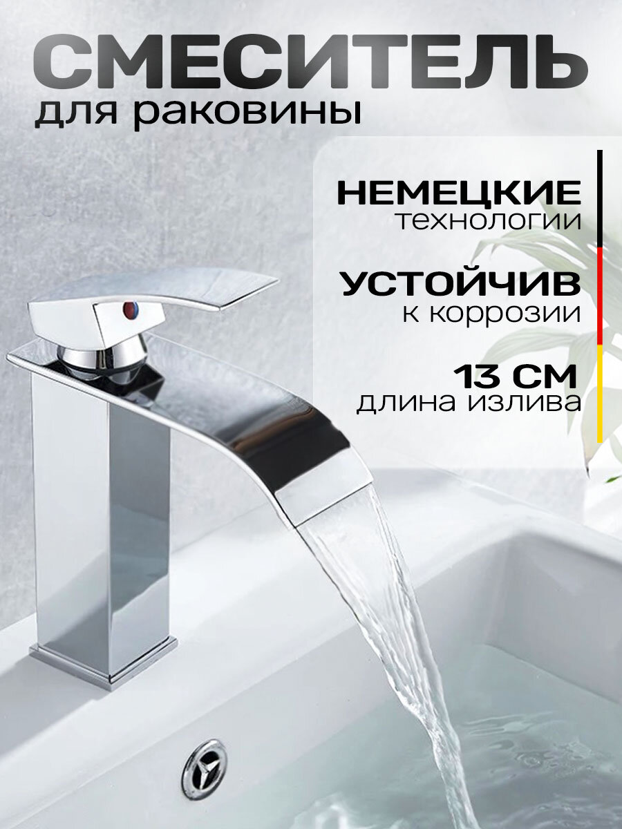 Смесители Смеситель для раковины с каскадным изливом Seven Silver серебристый, кран для ванной из нержавеющей стали
