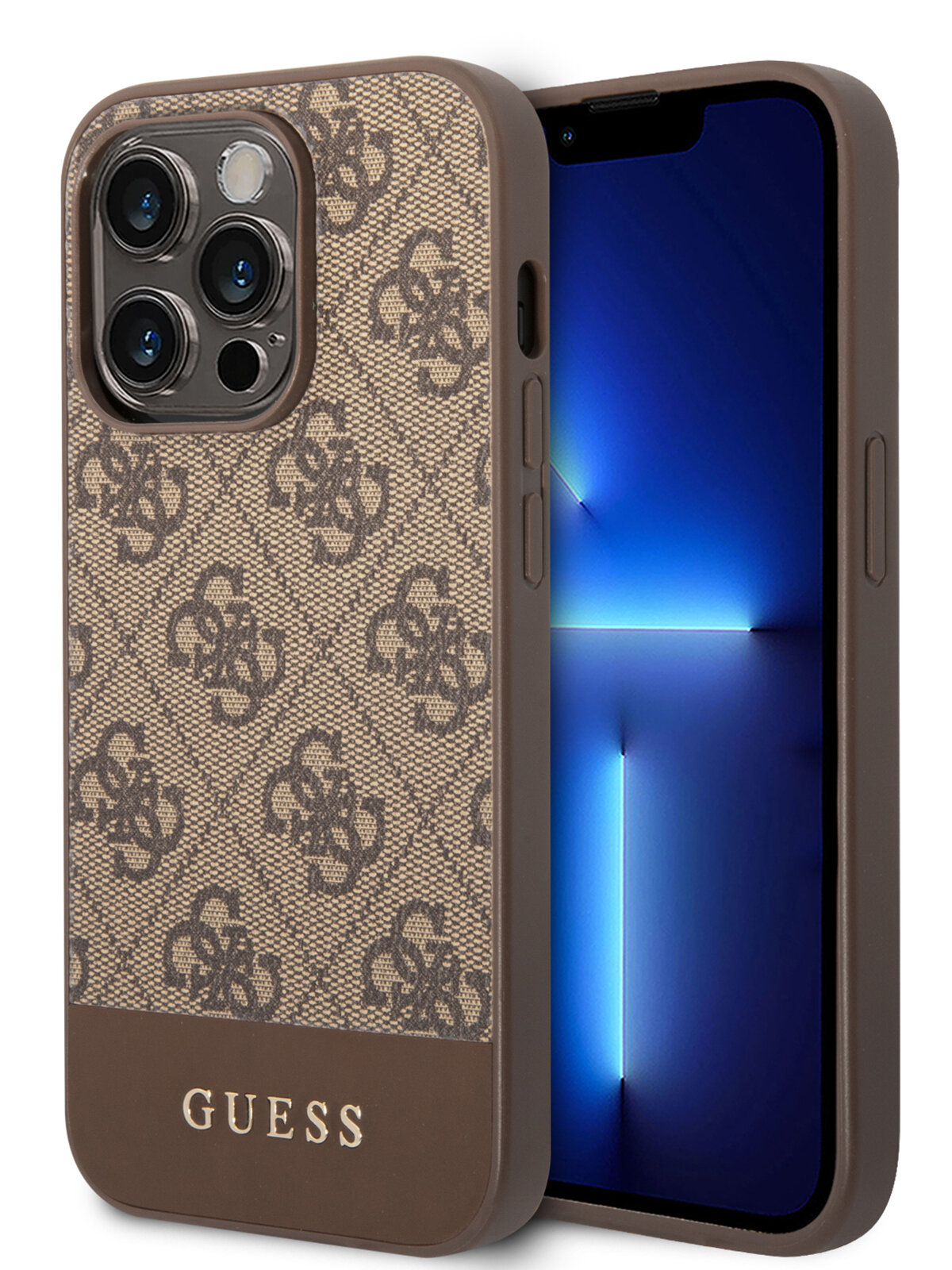 Чехлы для мобильных телефонов Guess для iPhone 14 Pro чехол PU 4G Bottom stripe Metal logo Hard Brown