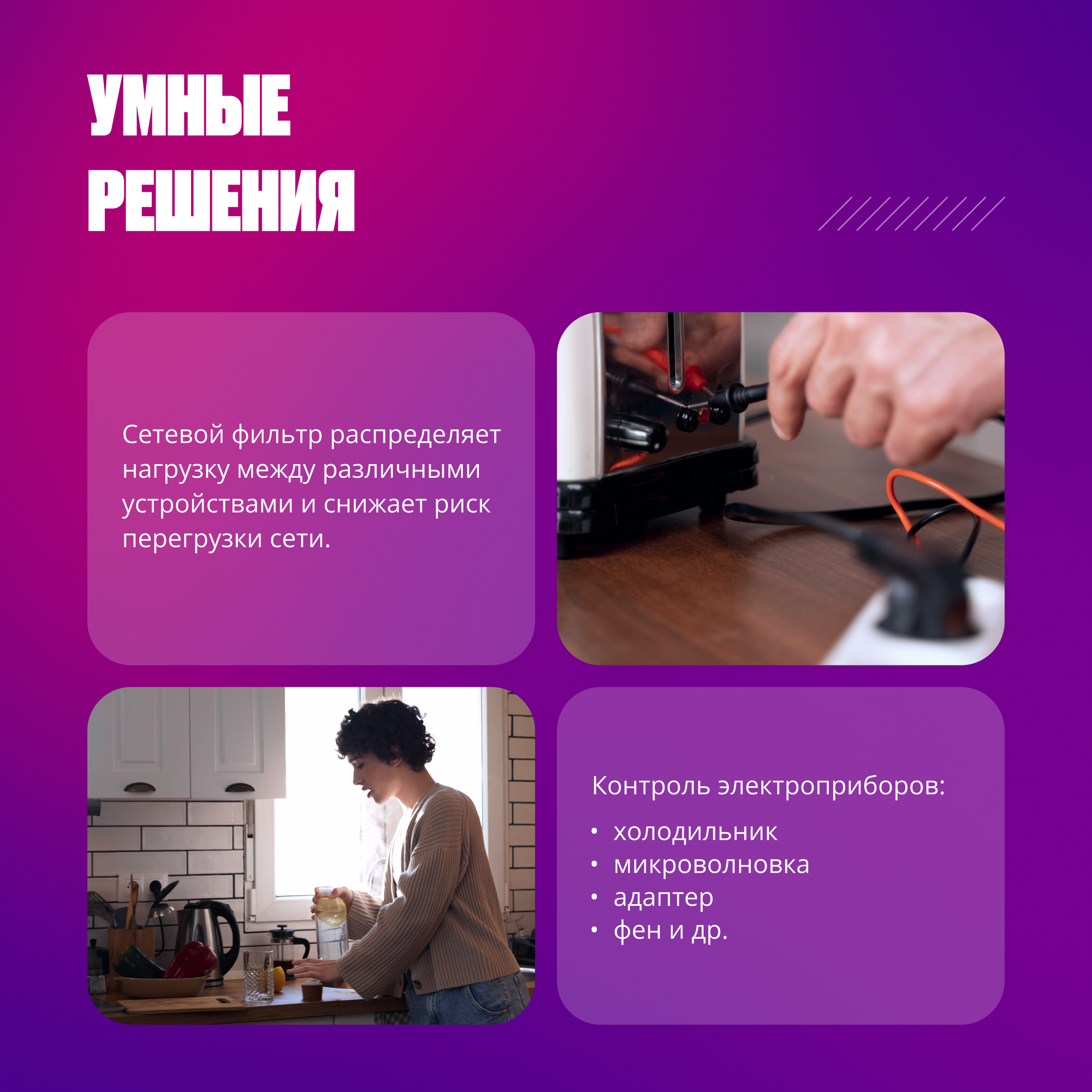 Умный сетевой фильтр, удлинитель с USB и WIFI для умного дома, 4 розетки + 1 USB + 2 Type C, с заземлением, белый 4 457 ₽ Подробнее