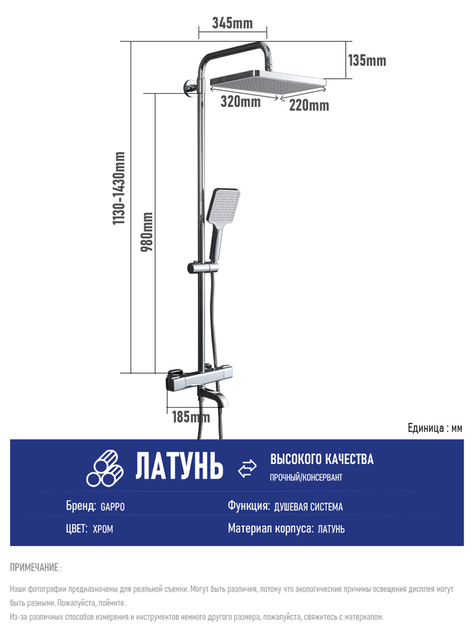 Смесители Душевая система GAPPO G24660, термостатическая, из латуни, хром