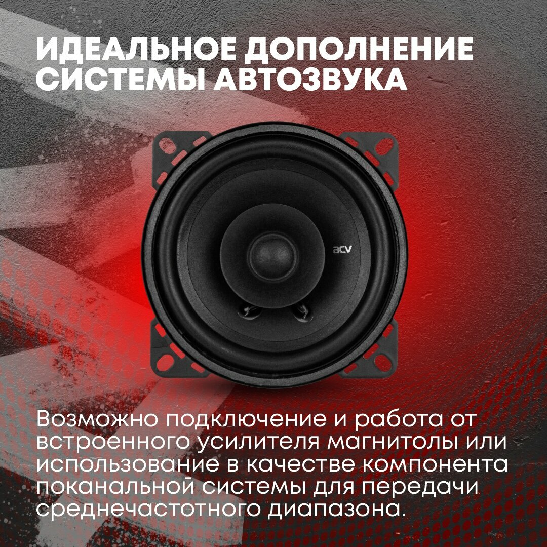 Автоакустика Колонки автомобильные ACV PD-401 (без решетки) 90Вт 88дБ 4Ом 10см (4дюйм) (ком:2кол.) коаксиальные однополосные
