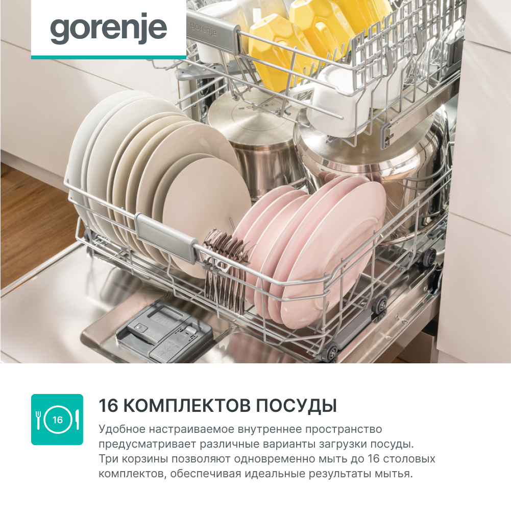 Посудомоечные машины Посудомоечная машина Gorenje GS643E90W, полноразмерная, максимальная загрузка 16 комплектов, защита от протечек