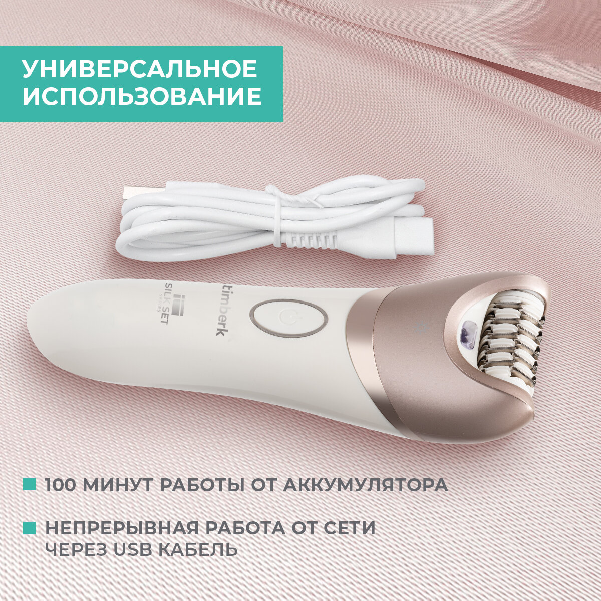 Эпиляторы Эпилятор Timberk T-EP02N6 с насадкой-бритвой и подсветкой + массажная насадка