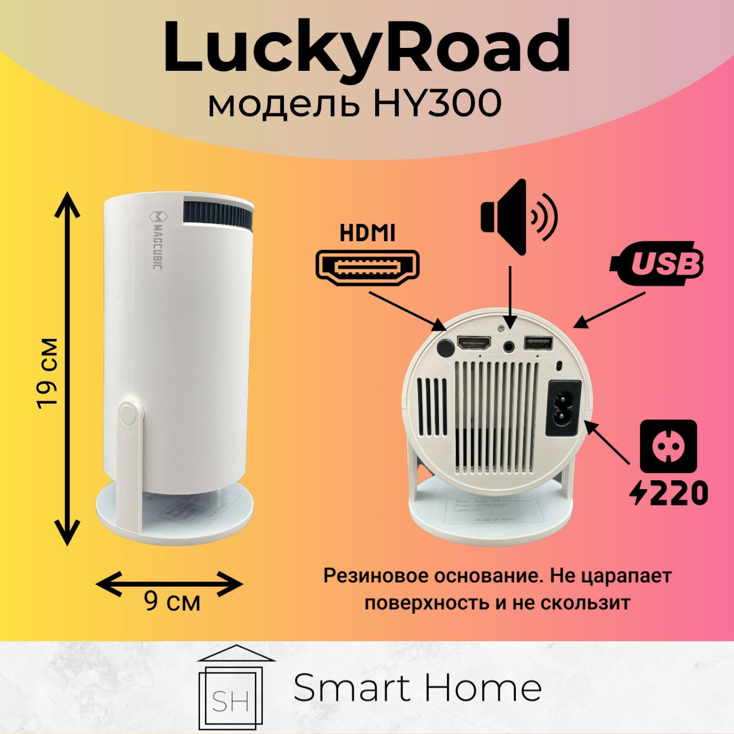 Проекторы Smart проектор HY300 (HDMI Wi-Fi 5G Bluetooth) + БЕСПЛАТНЫЕ КИНОТЕАТРЫ 2160p 60fps, белый для дома, дачи и офиса