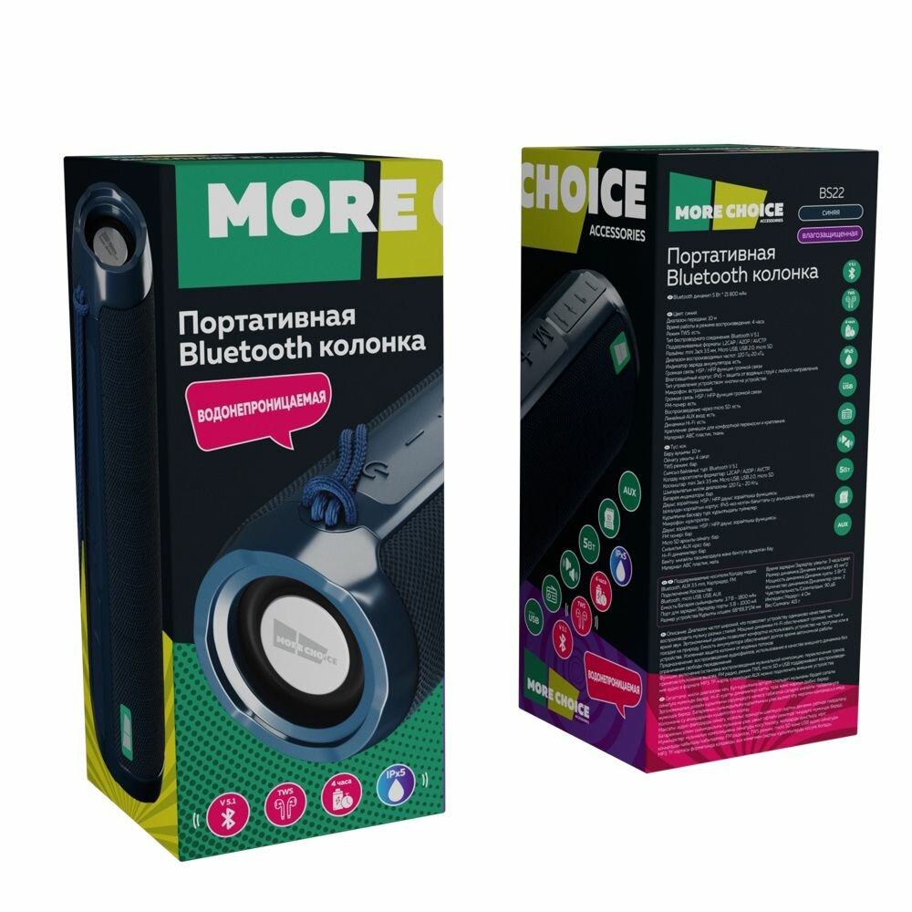 Портативные колонки Колонка портативная More Choice BS22, синий