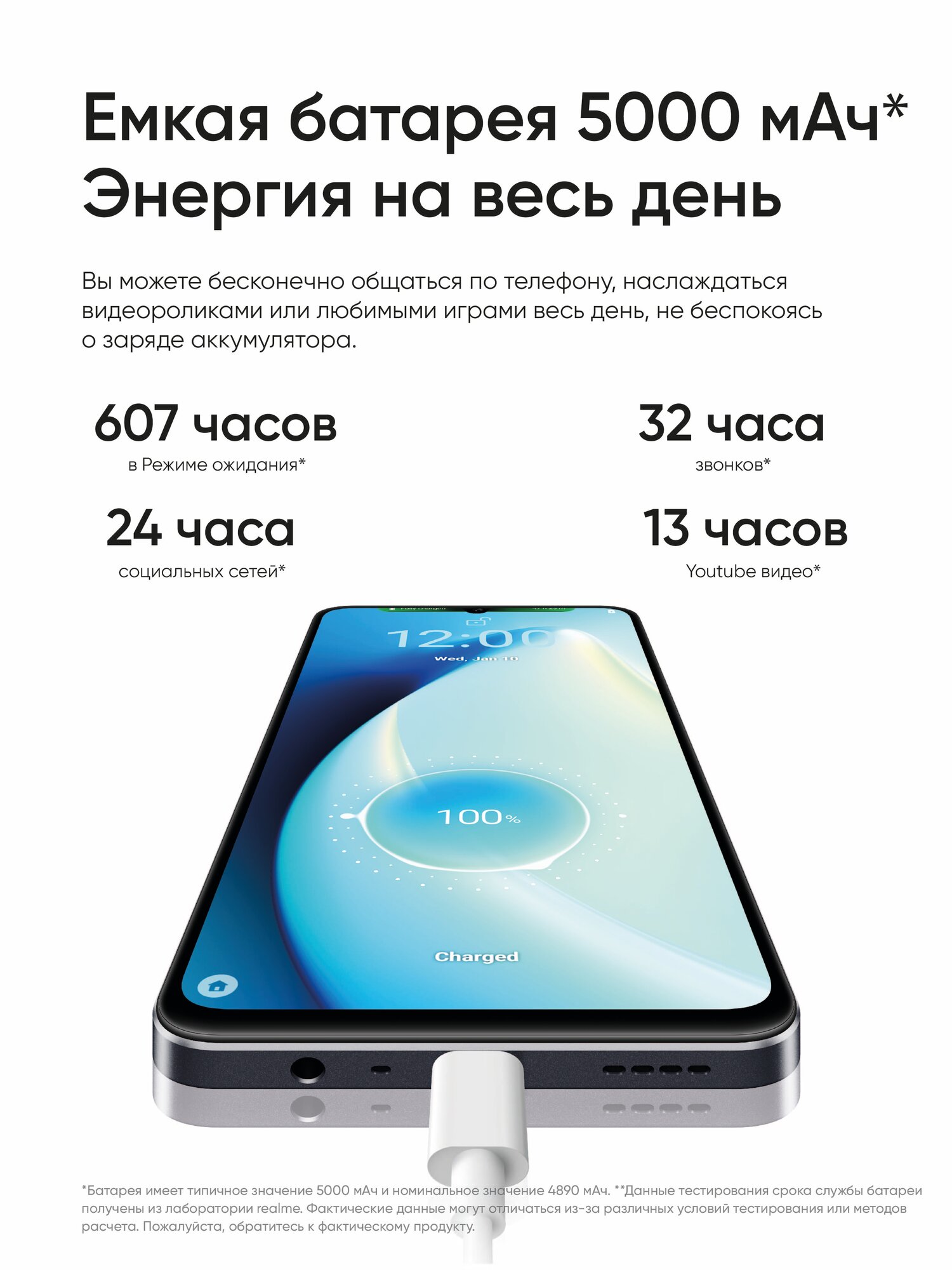 Смартфон REALME RMX3834 (Note 50) 4 + 128 ГБ цвет: полуночный черный