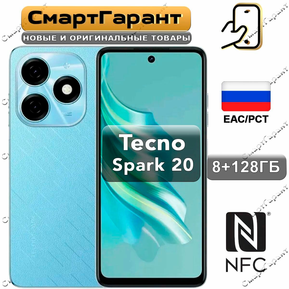 Мобильные телефоны Смартфон Tecno SPARK 20 8/128 ГБ Ростест, Dual nano SIM, Голубой