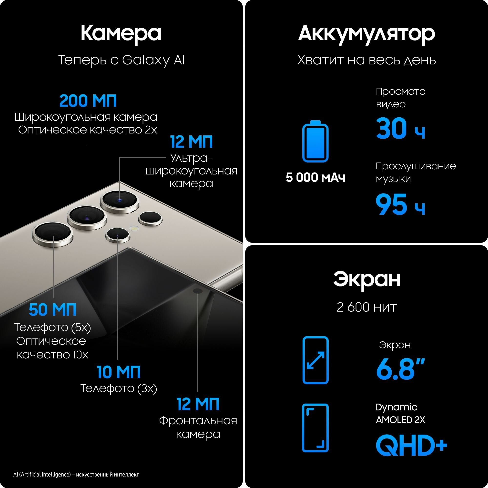 Смартфон Samsung Galaxy S24 Ultra 12/512 ГБ, Dual: nano SIM + eSIM, Titanium Black