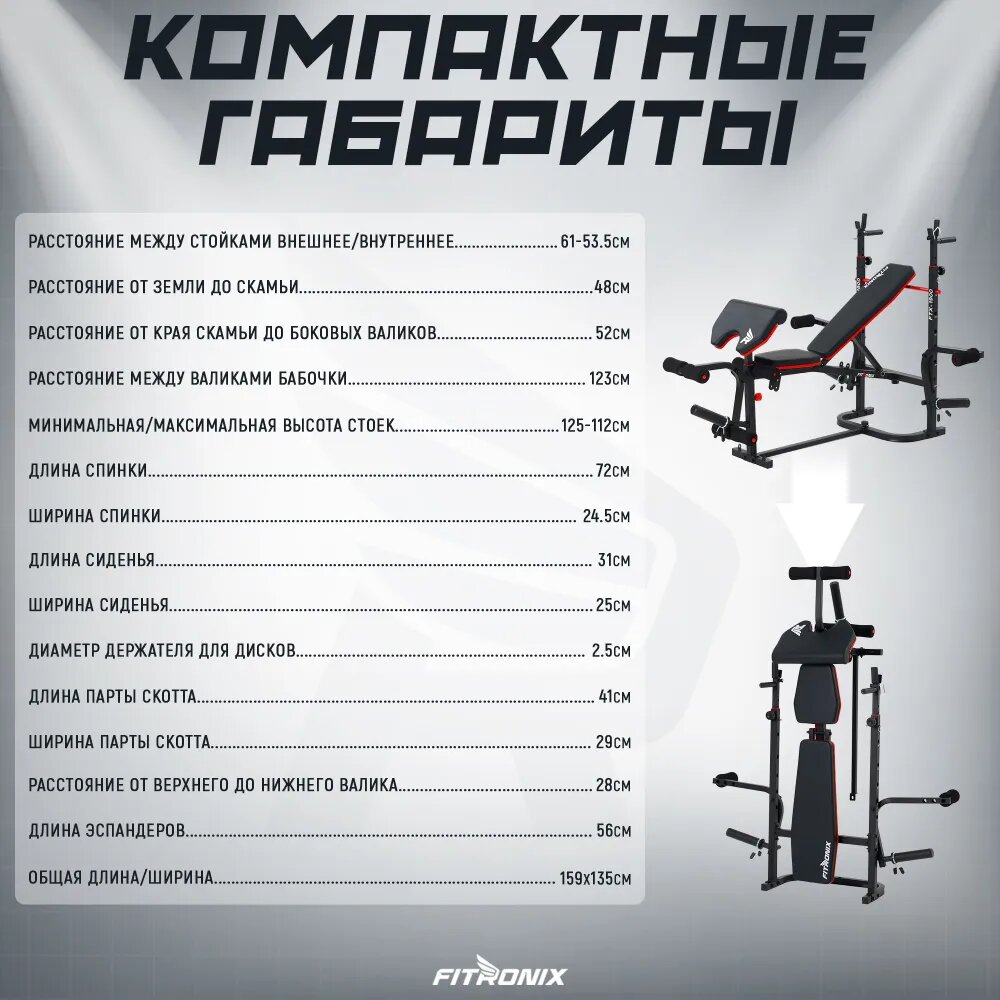 Скамья FITRONIX FTX-776, для жима пресса, ног, рук, максимальная нагрузка 250 кг 15 470 ₽ Подробнее