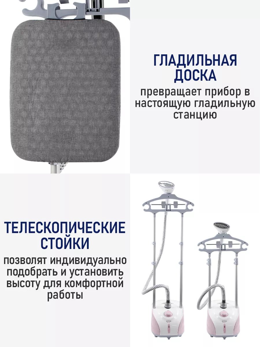 Отпариватели одежды Парогенератор напольный отпариватель с гладильной доской STINGRAY ST-ST300A белый/розовый