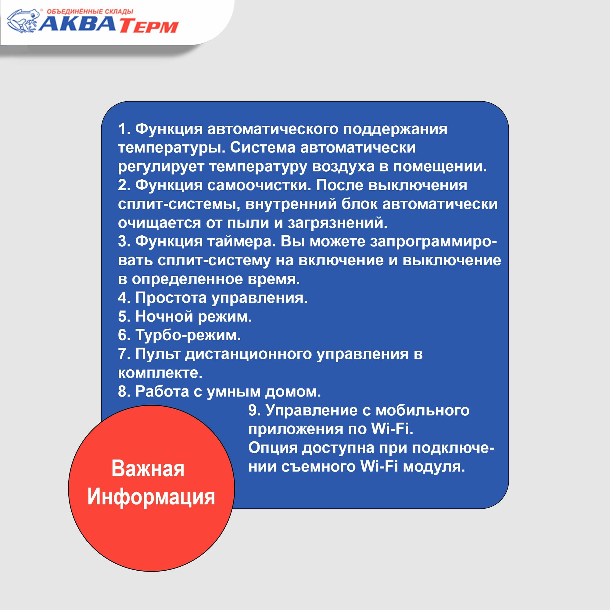 | Режимы работы | охлаждение/обогрев/осушение/вентиляция |