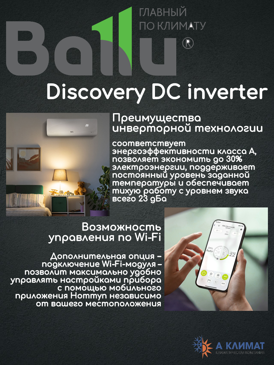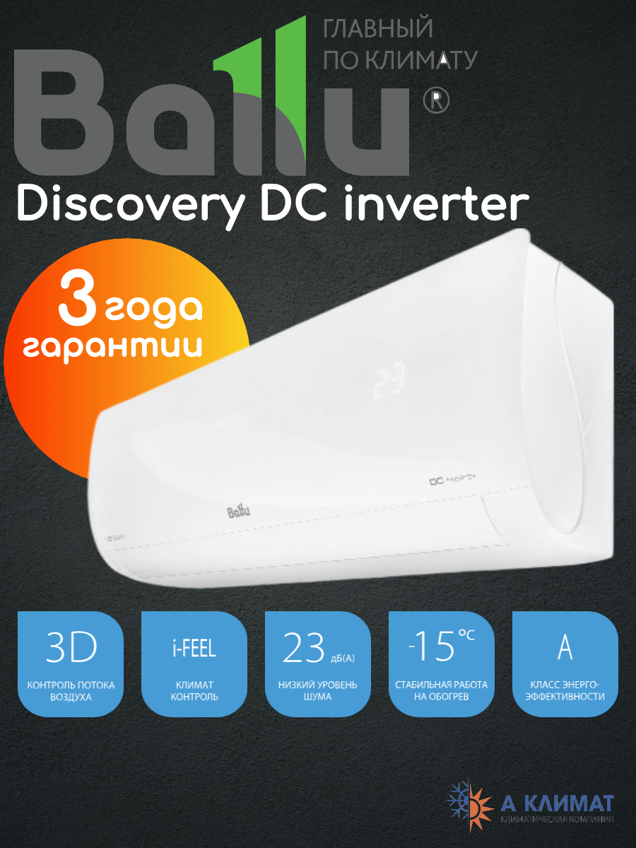 Сплит-система Ballu Discovery BSVI-09HN8 ( inverter) для помещения 25 кв.м 38 990 ₽ Подробнее