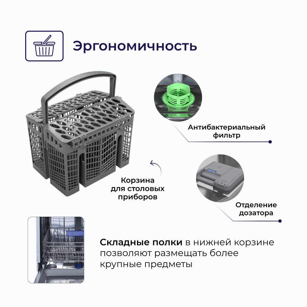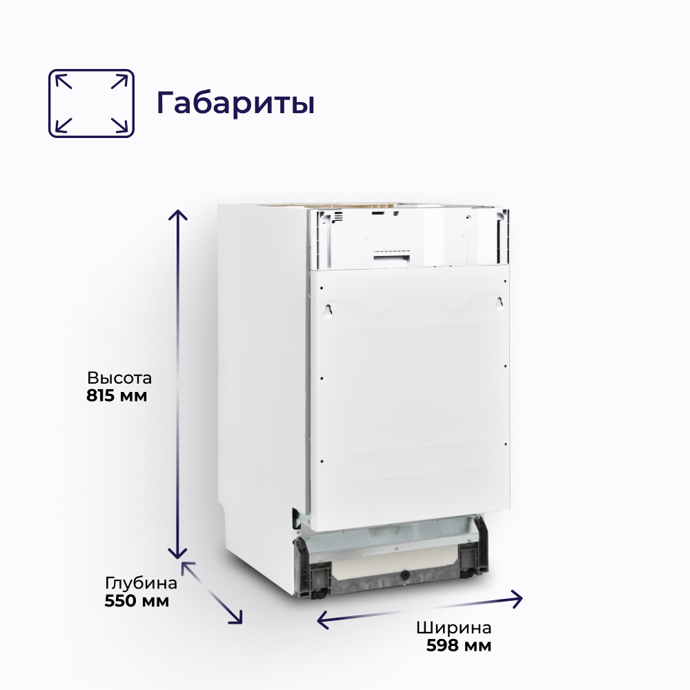 Посудомоечная машина 45 см встраиваемая узкая DELVENTO VGB4600 / 6 программ / 10 комплектов / белый / цифровой дисплей / 2 корзины загрузки / отложенный старт / блокировка от детей / защита от протечек / гарантия 3 года 27 990 ₽ Подробнее