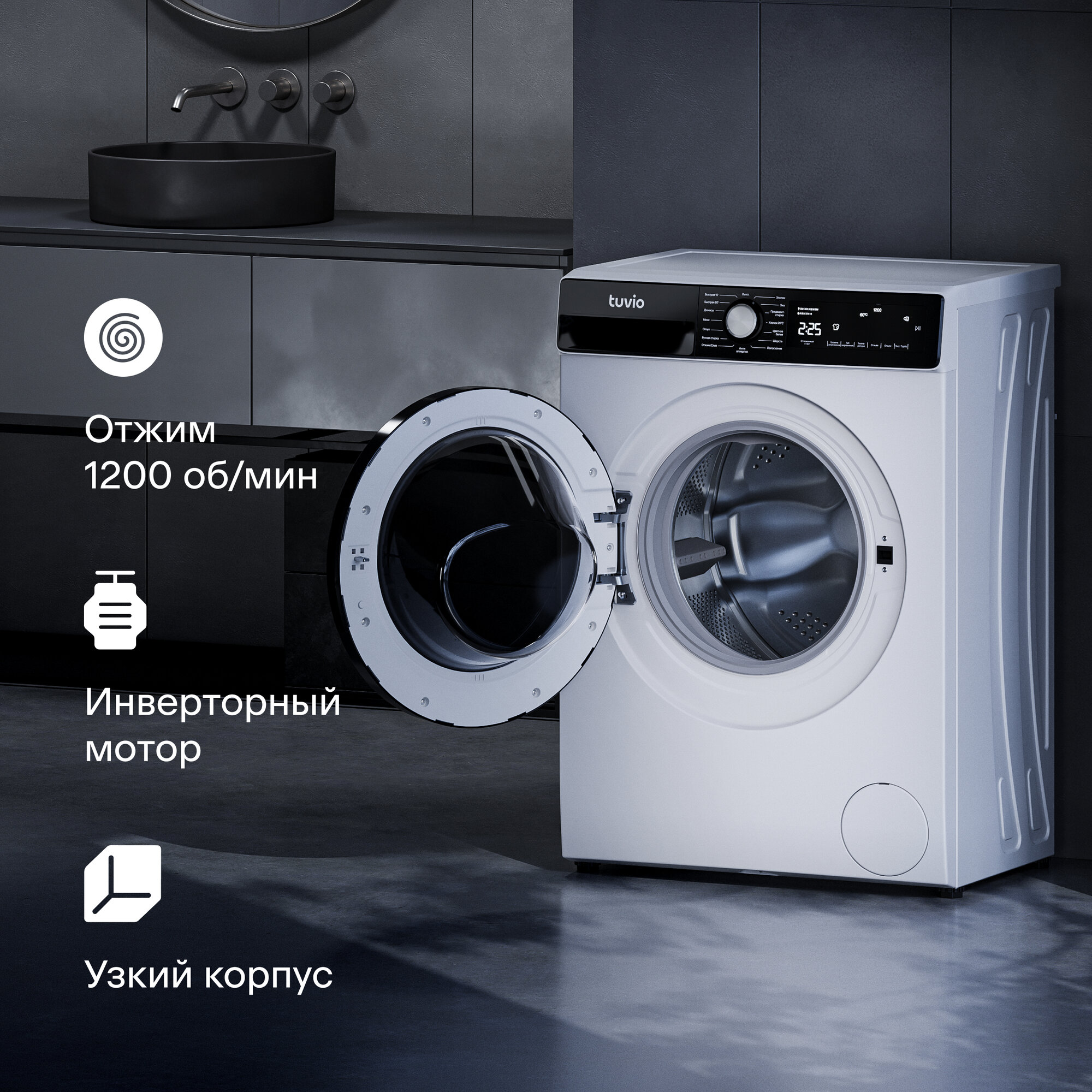 Стиральные машины Стиральная машина с инвертором и паром Tuvio WFS66HW21, белый