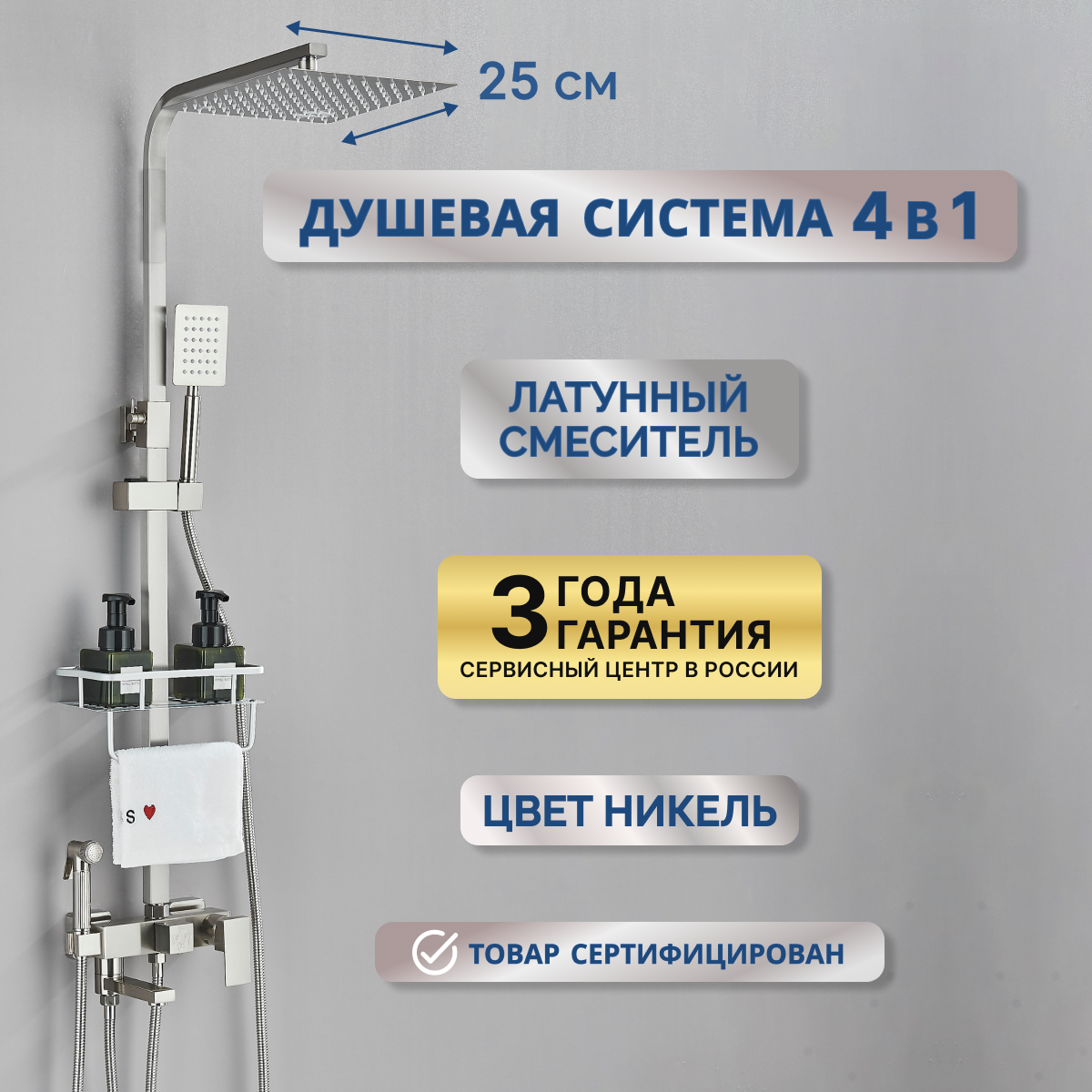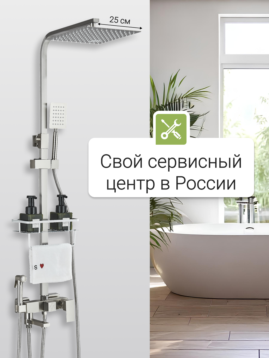 Душевой комплект 4в1 с тропическим душем, гигиеническим душем, душевая система со смесителем, душевой гарнитур никель 12 200 ₽ Подробнее