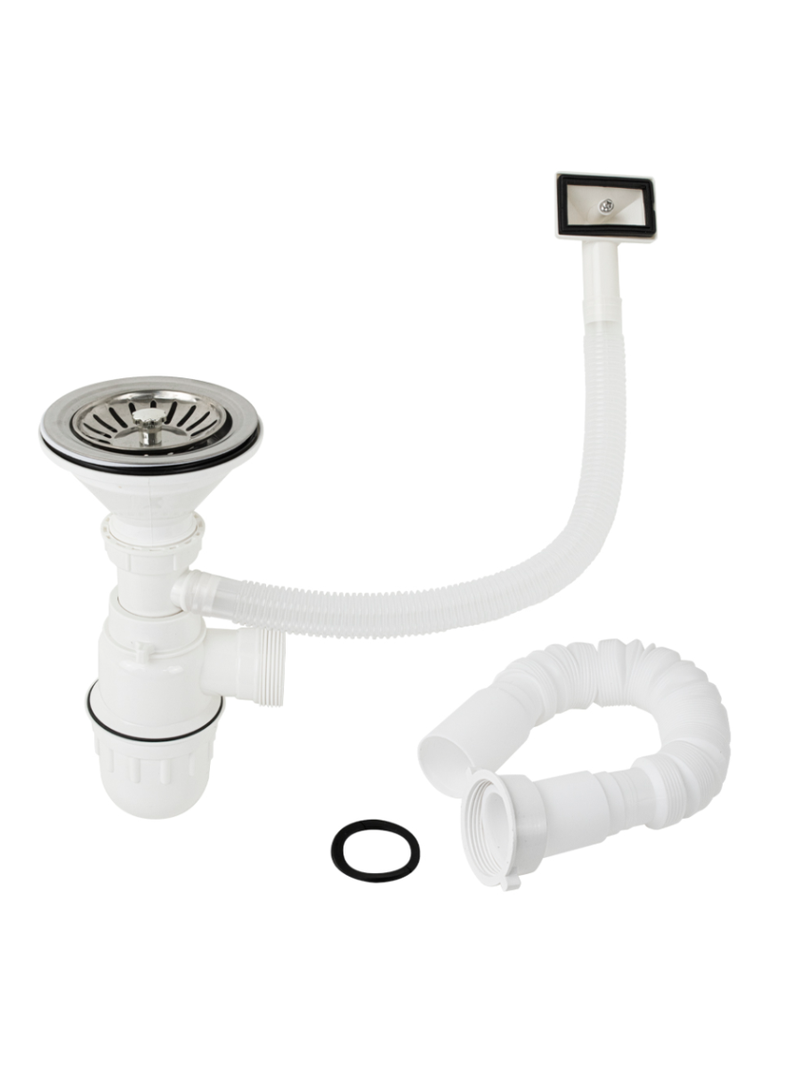 Мойка накладная 50х60 см, толщина 0,6 мм, глубина 160 мм + большой сифон с переливом