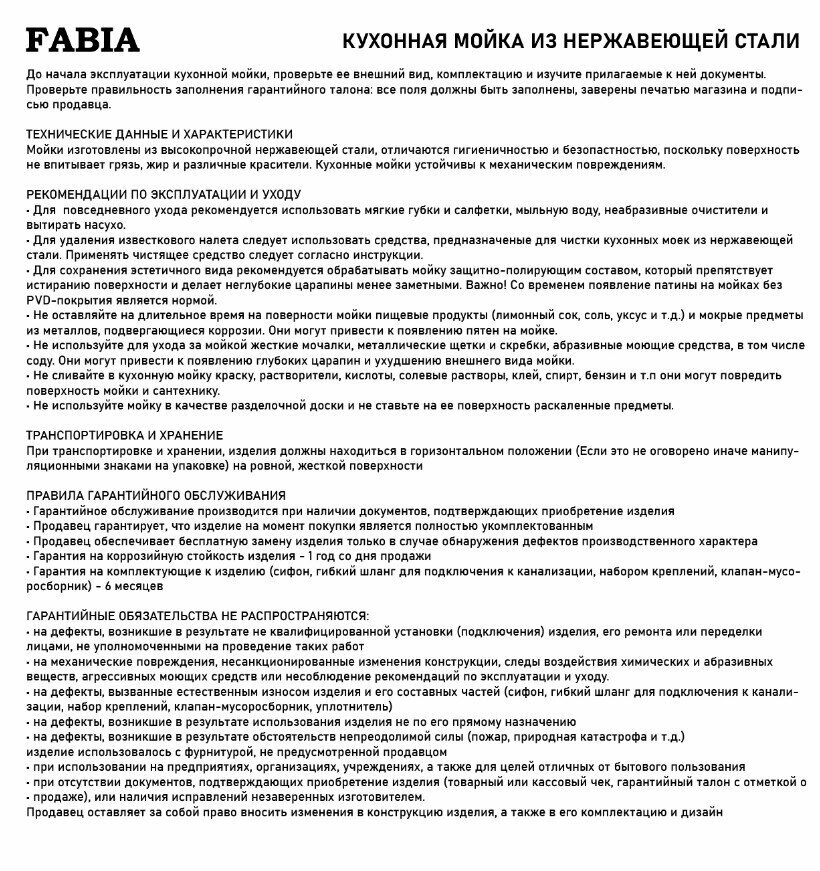 Кухонная мойка Fabia 62272 .