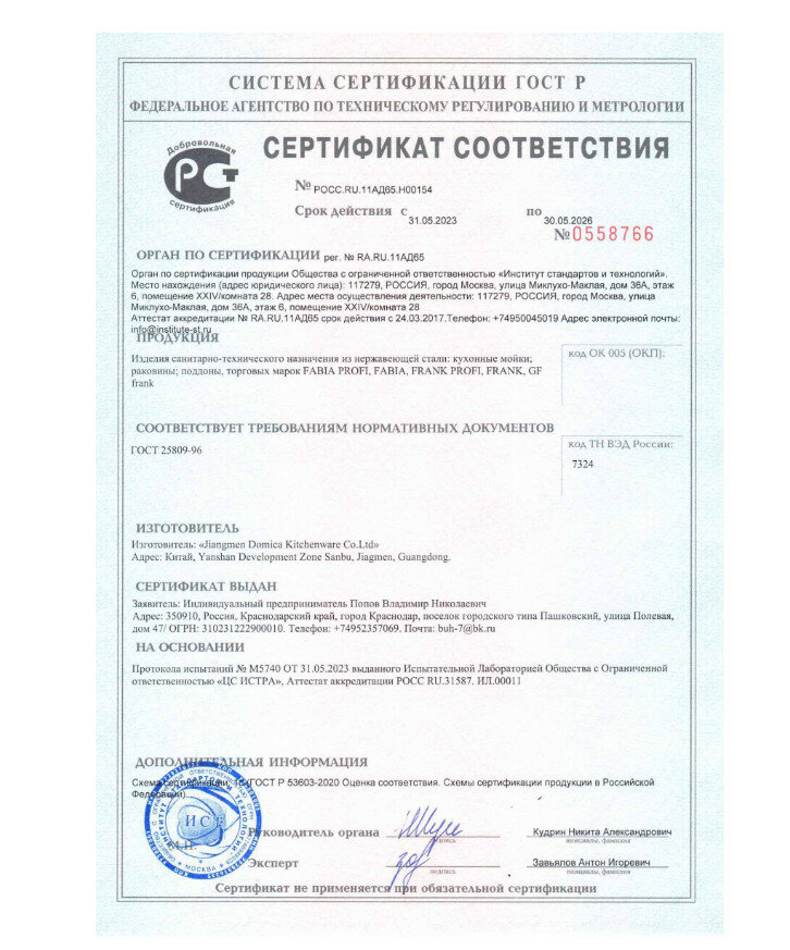 | Материал корпуса | нержавеющая сталь / AISI 304 / |