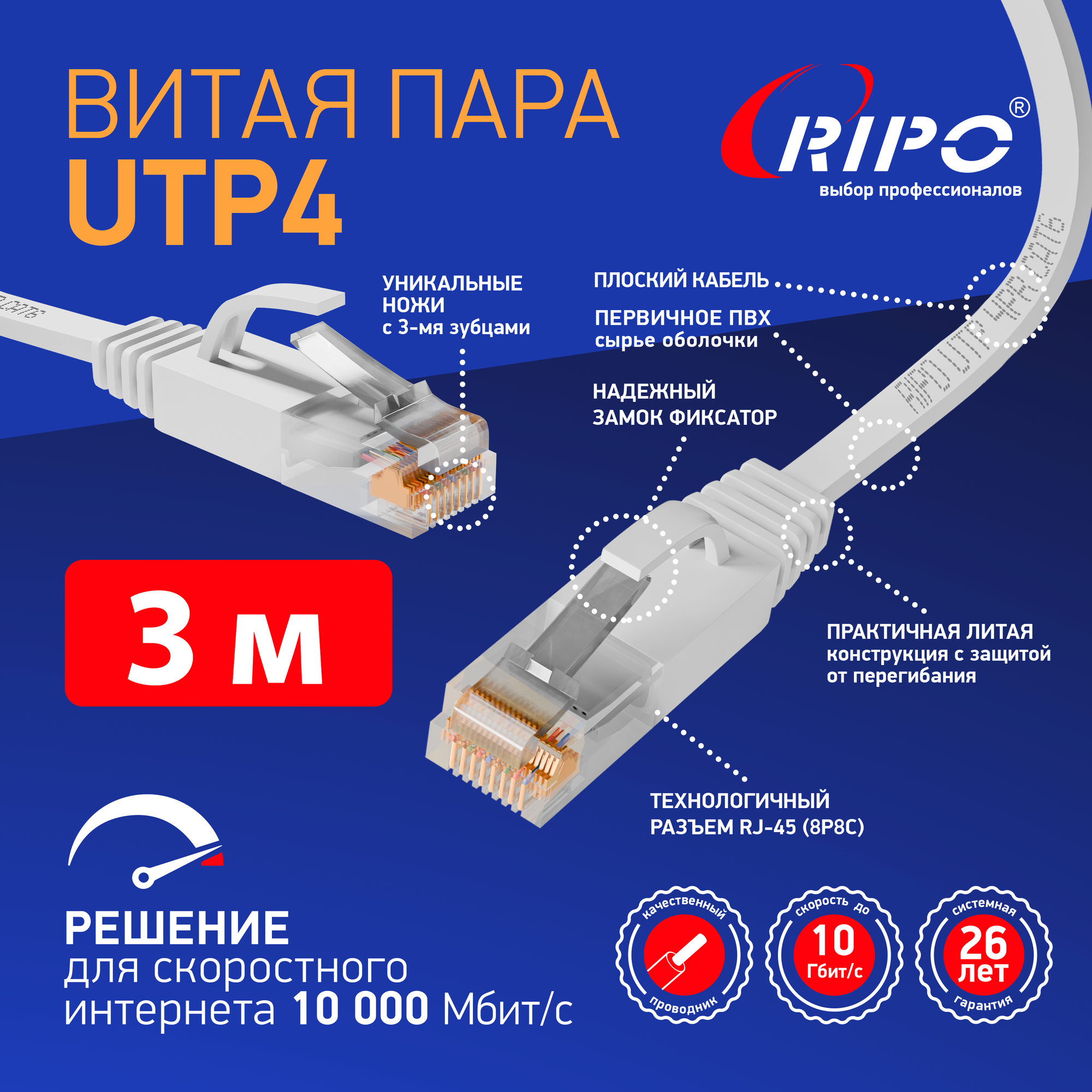 RIPO / Патч-корд кабель (витая пара) Ripo 7 метров