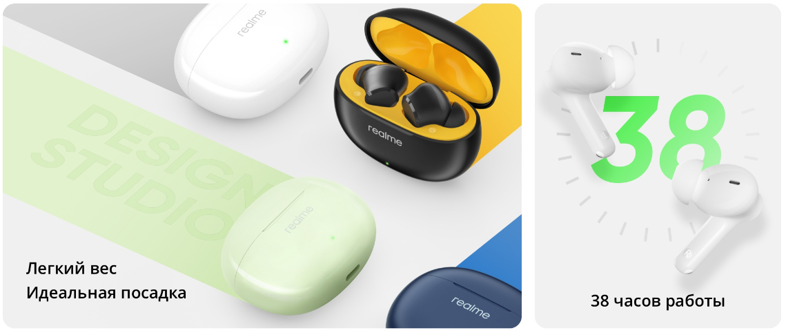 Bluetooth-гарнитура Realme Buds T310, длительное время автономной работы, 50 мс, низкая задержка 2 699 ₽ Подробнее