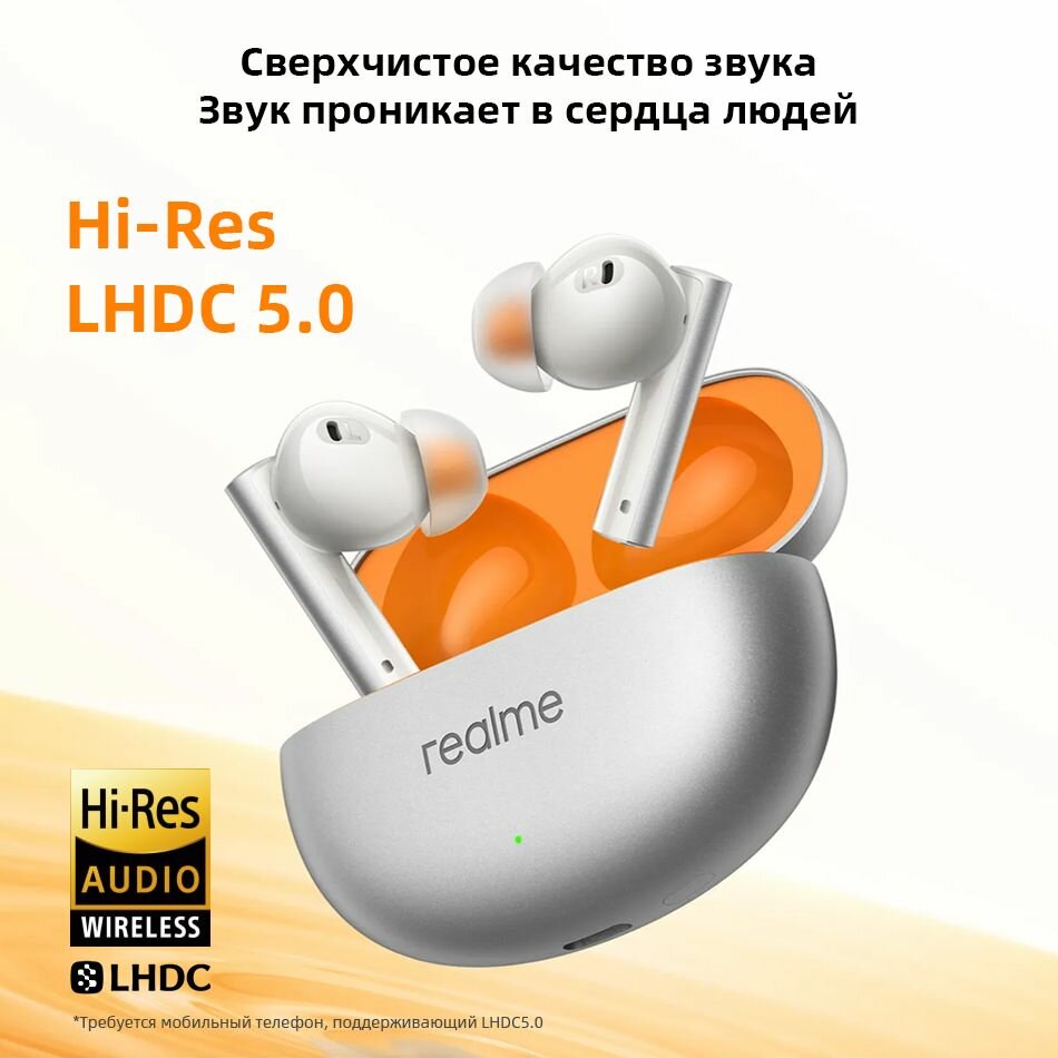 Наушники Глобальная версия realme buds air 6 настоящие беспроводные наушники Активное шумоподавление 50 дБ AAC, SBC , LHDC 5.0 , IP55