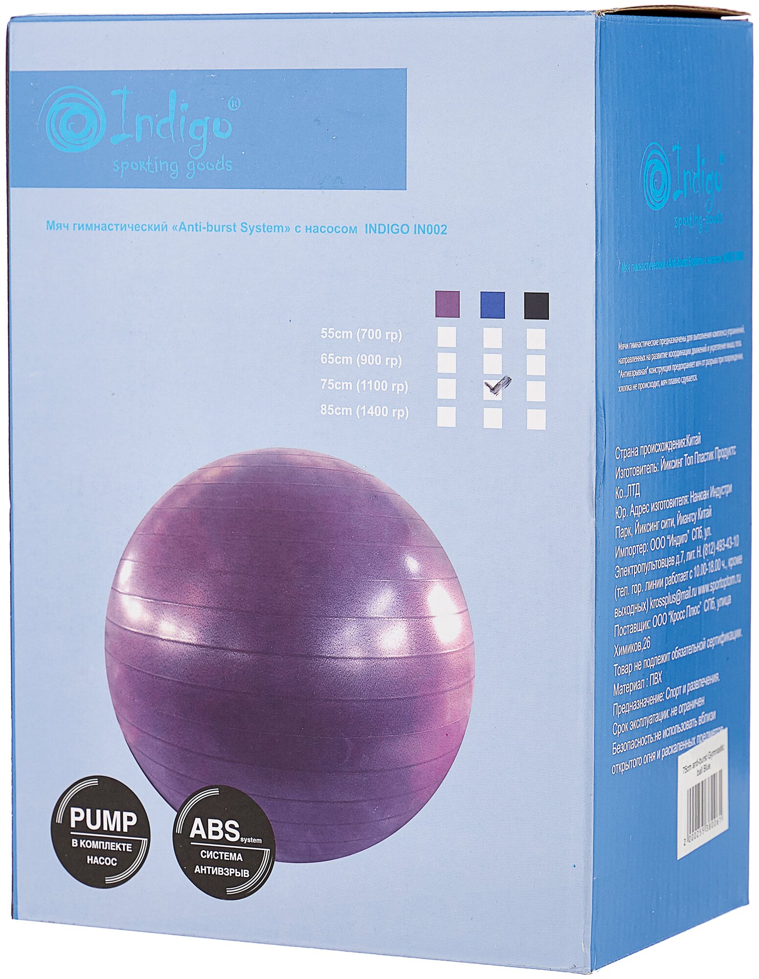 Мяч для фитнеса / фитбол Мяч гимнастический IN002 INDIGO Anti-burst с насосом Синий 75см