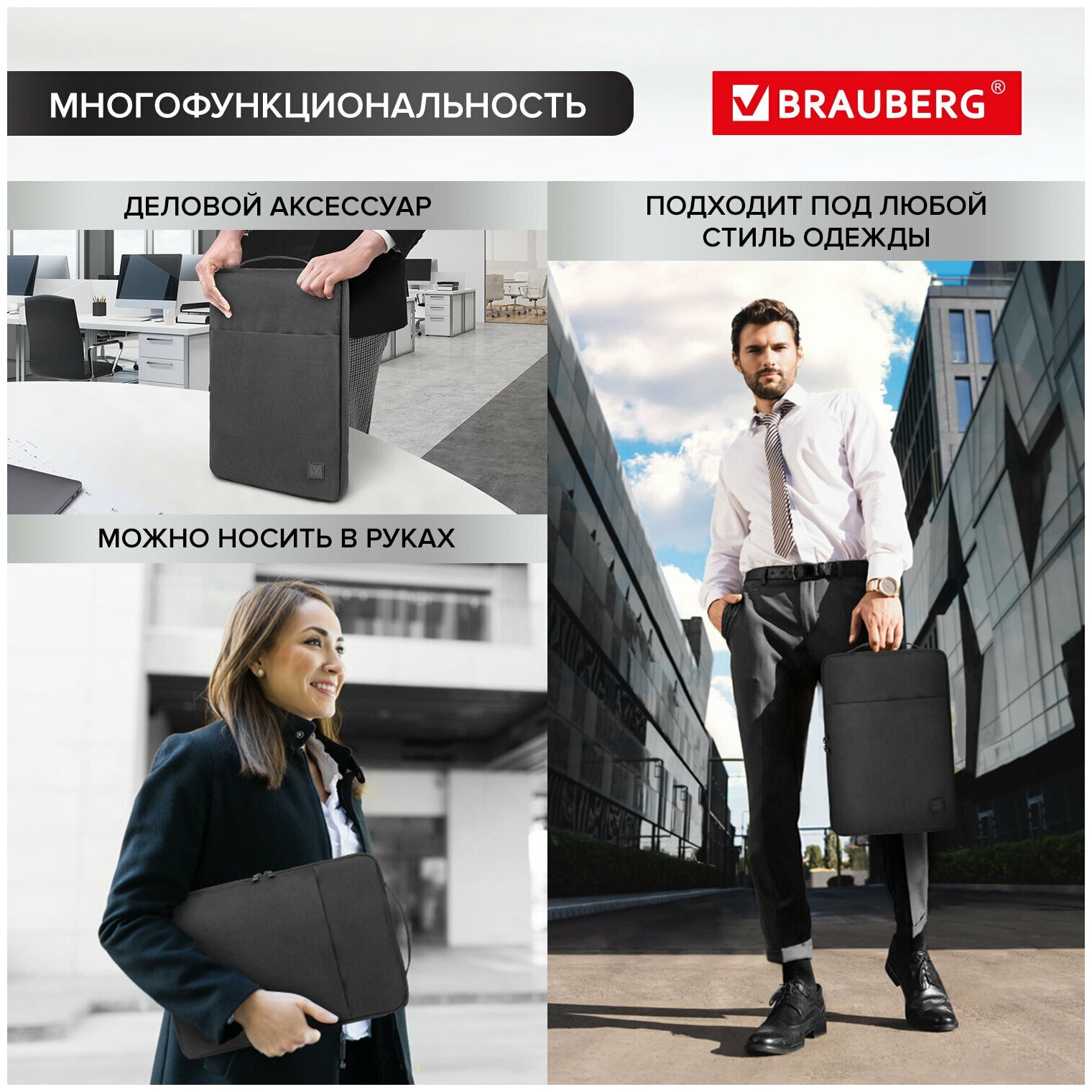 Сумка для ноутбука BRAUBERG Option, 35.5 х 24 х 2.5 см, с ручкой и карманом, чёрная