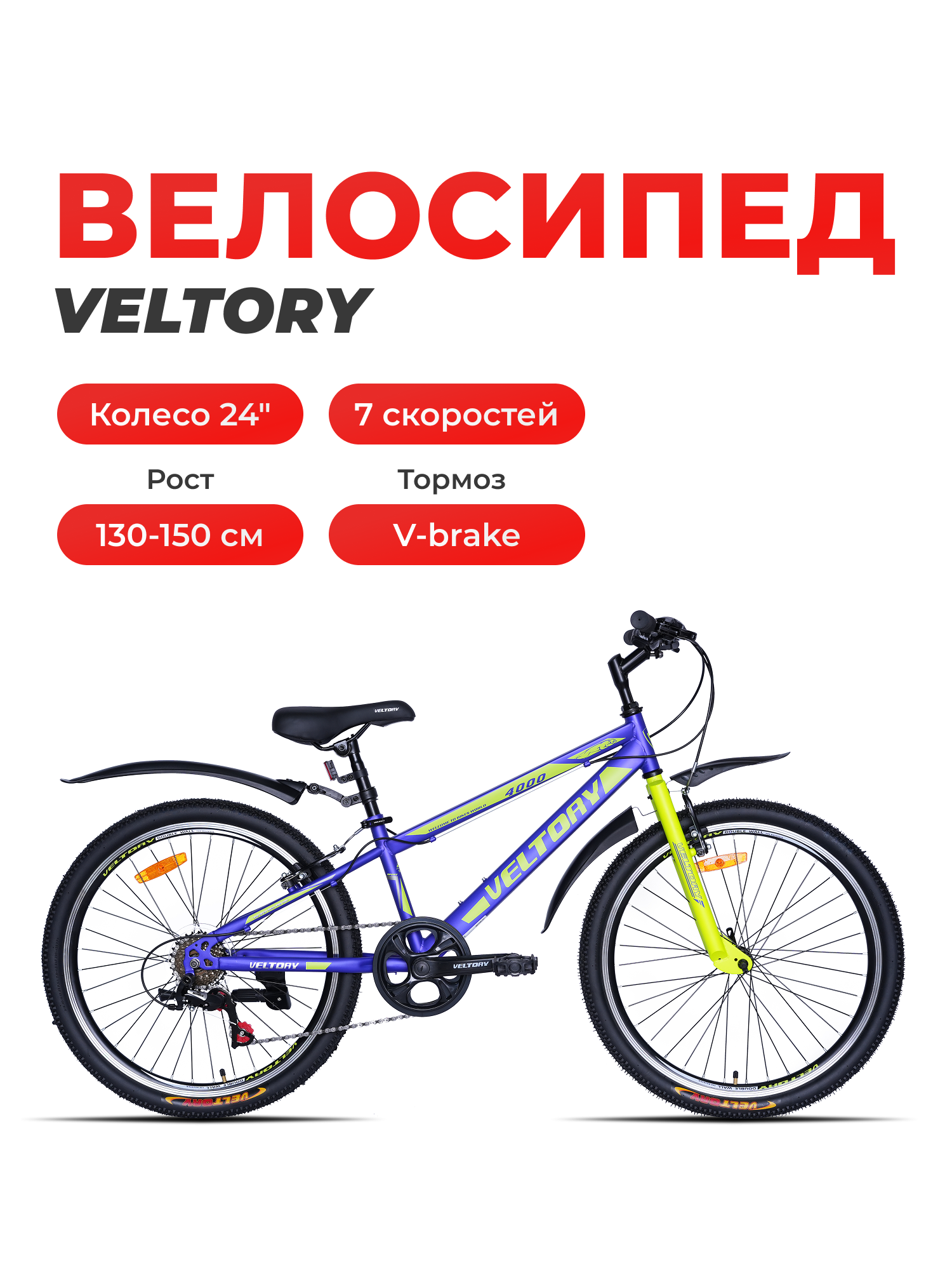 Велосипед подростковый VELTORY 4000/ красный/ колесо 24 (на 9-13 лет, рост 130-150см) 15 015 ₽ Подробнее