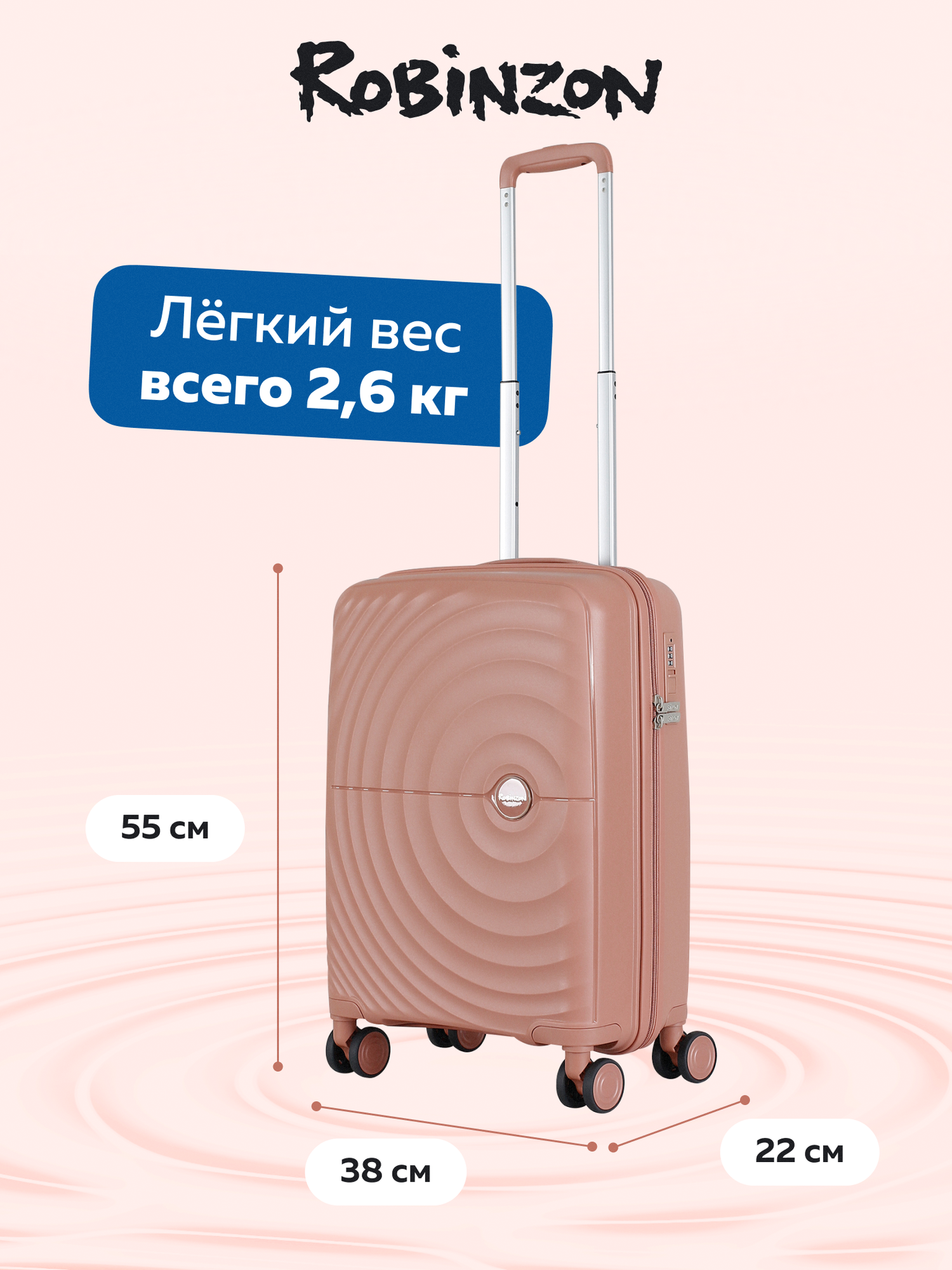 Чемодан Robinzon RP1403-J Jamaica S *64 Rose Gold 7 950 ₽ Подробнее