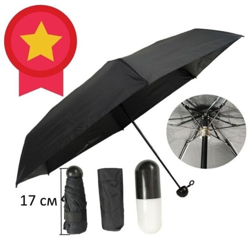 Зонт мини карманный в капсуле / Мини зонт / Карманный зонт / Компактный зонт / Всесезонный непромокаемый зонт / Зонт с чехлом / Зонт в капсуле черный