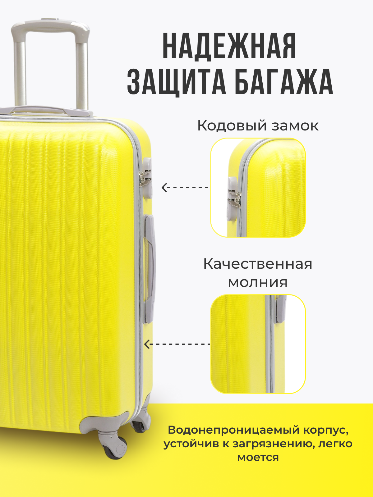 Чемодан на колесах дорожный средний багаж для путешествий s+ TEVIN размер С+ 60 см 52 л легкий 2.6 кг небольшой, прочный abs пластик Желтый яркий 6 390 ₽ Подробнее