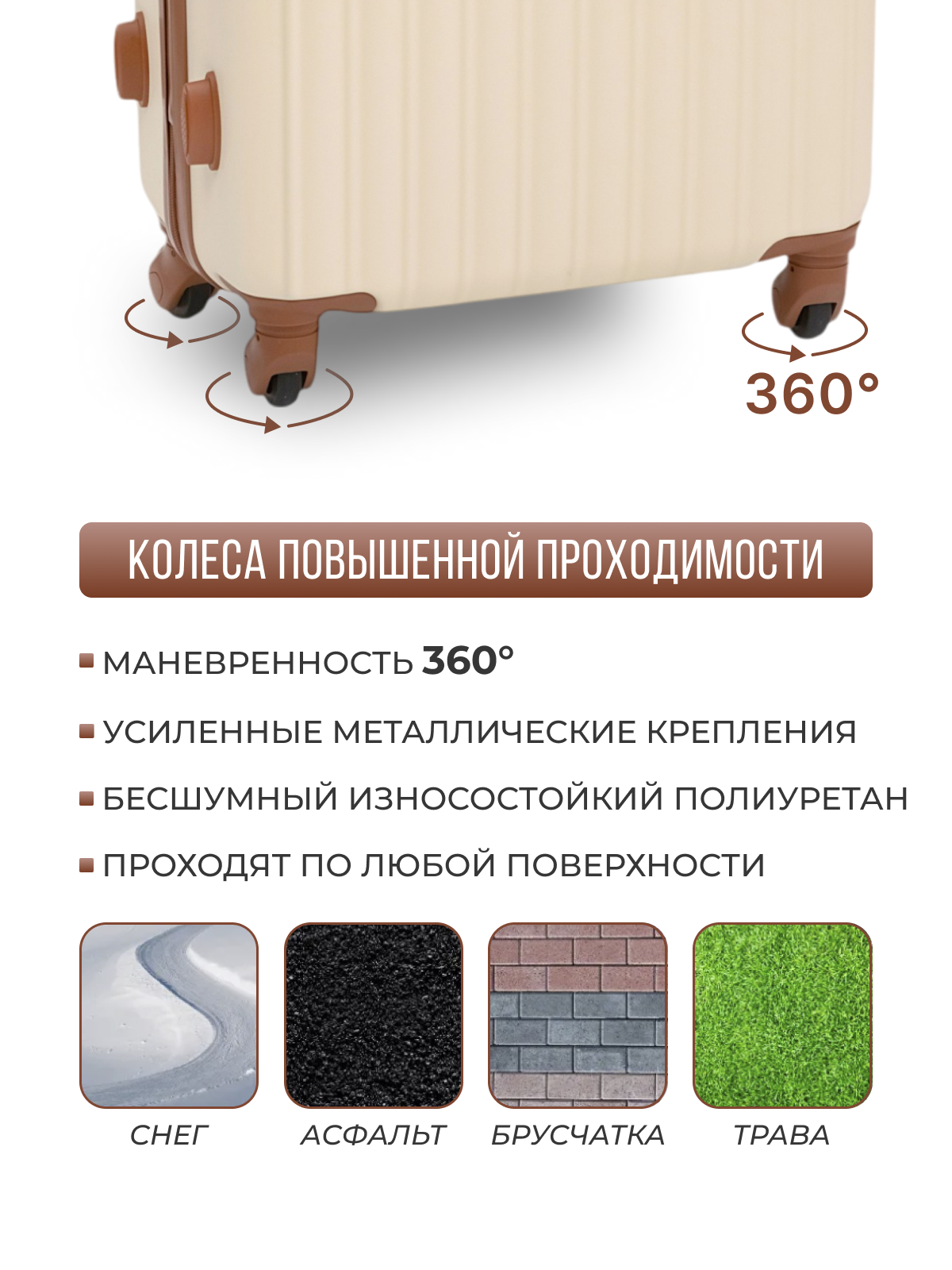 Чемодан на колесах дорожный ручная кладь в самолет s TEVIN размер С маленький 55 см ручной 37 л cabin 21" легкий 2.5 кг прочный abs пластик бежевый 6 490 ₽ Подробнее