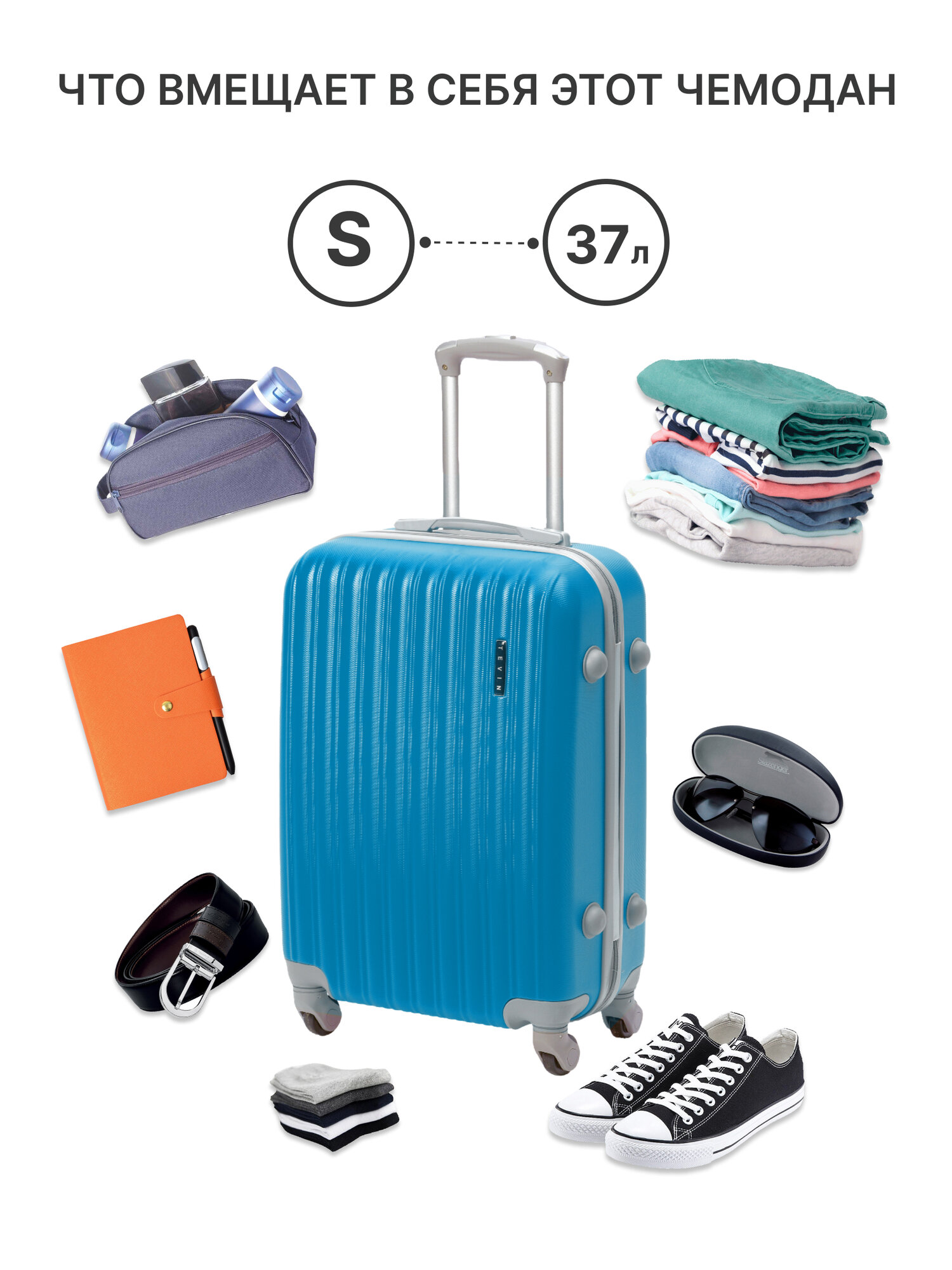 Чемоданы Чемодан TEVIN, 37 л, размер S, голубой