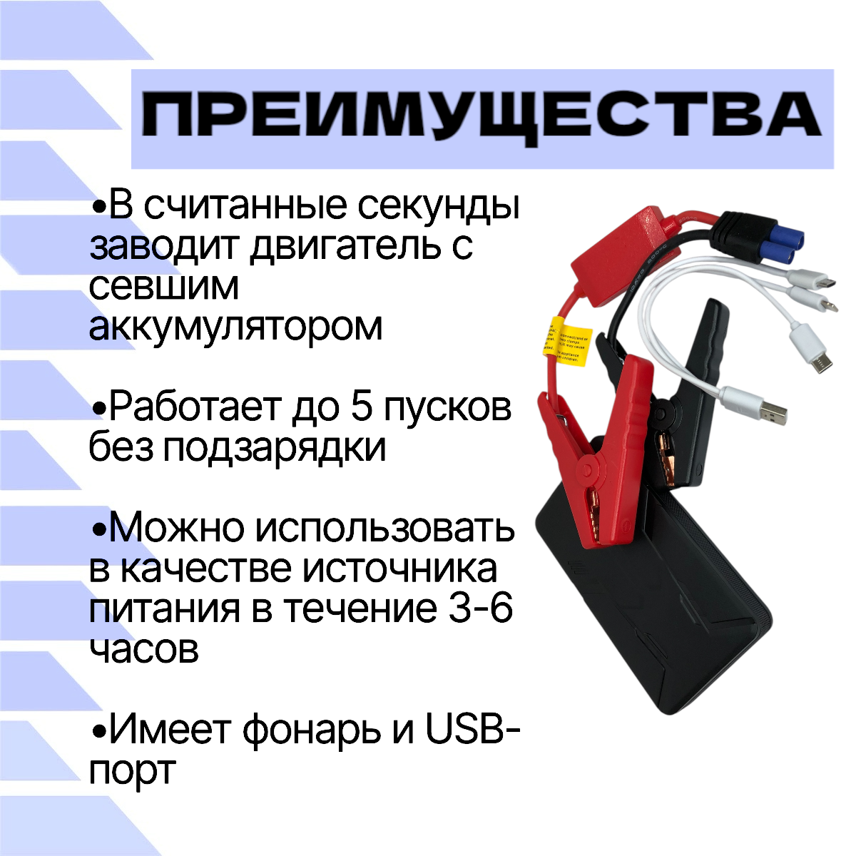 Зарядные станции Зарядно-пусковое портативное устройство Jump Starter, 6000 mAh, пуск. ток=200A, пик. ток=400А,12 А/ч