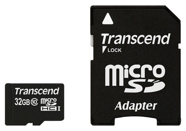 Карта памяти microSDHC Transcend 32Gb, Class 10, TS32GUSDHC10, 1шт., переходник SD (TS32GUSDHC10)